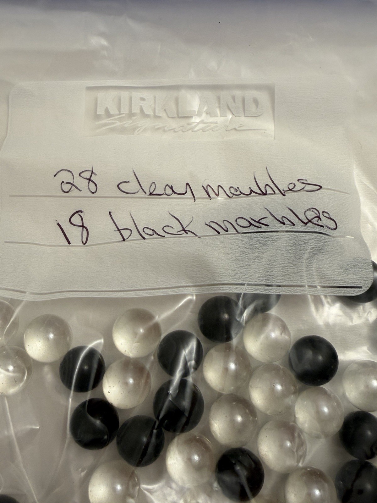 как выглядит Vintage Lot 28 Clear Glass Marbles 18 Black Glass Marbles Approx 1cm 6.4oz фото