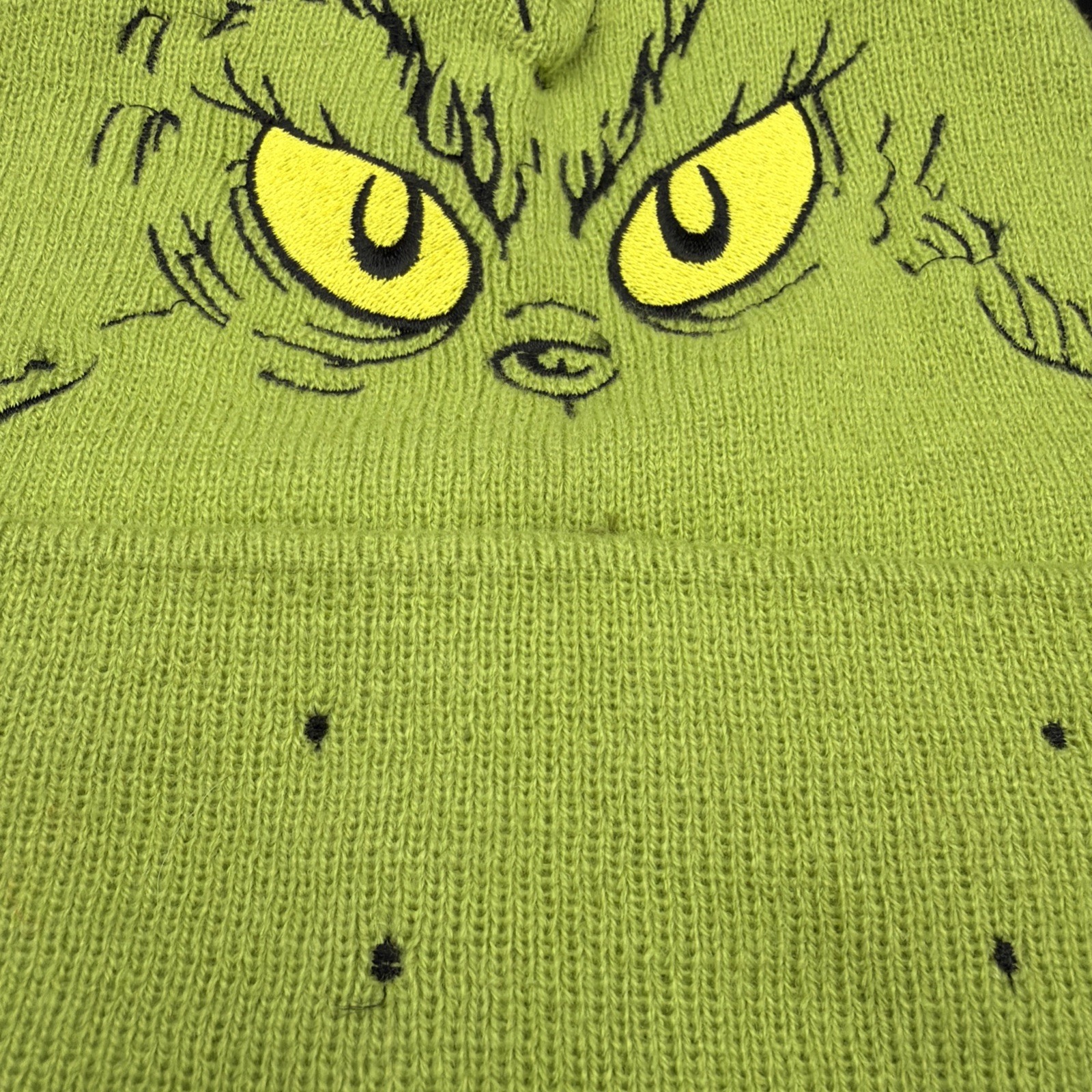 как выглядит Dr. Seuss The Grinch OSFM 2022 Cuffed Green Black Pom Pom Beanie Hat фото