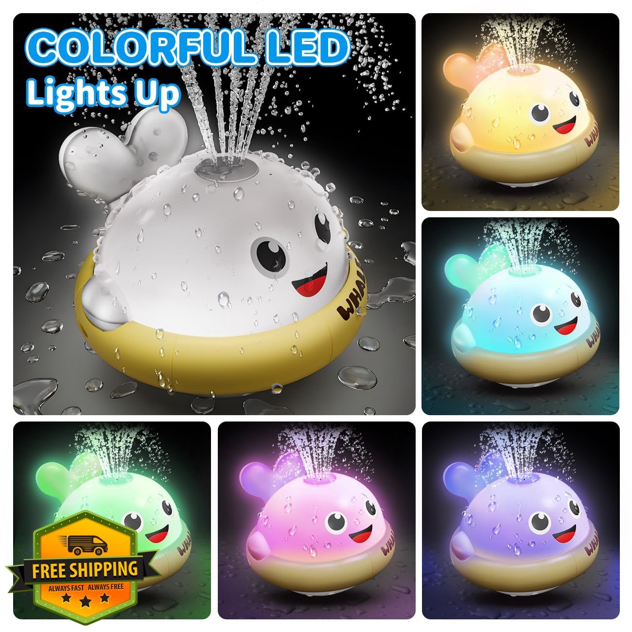 Grey Whale Bath Toy Sprinkler Light Up Toddler Bathtub Pool Toy