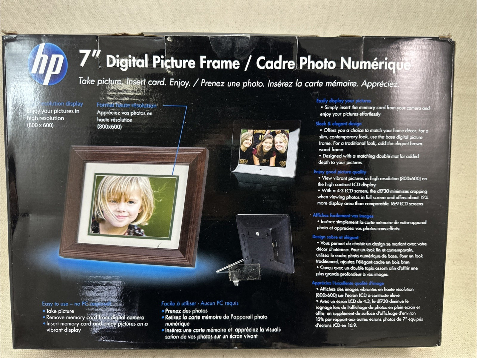 HP 7 Brown Wood Digital Picture Frame DF730a4 w/ Remote New Open Box