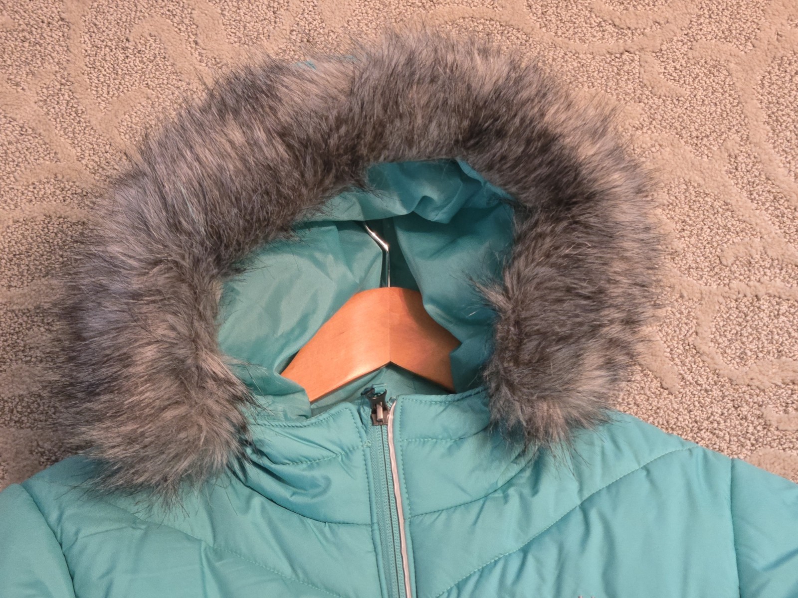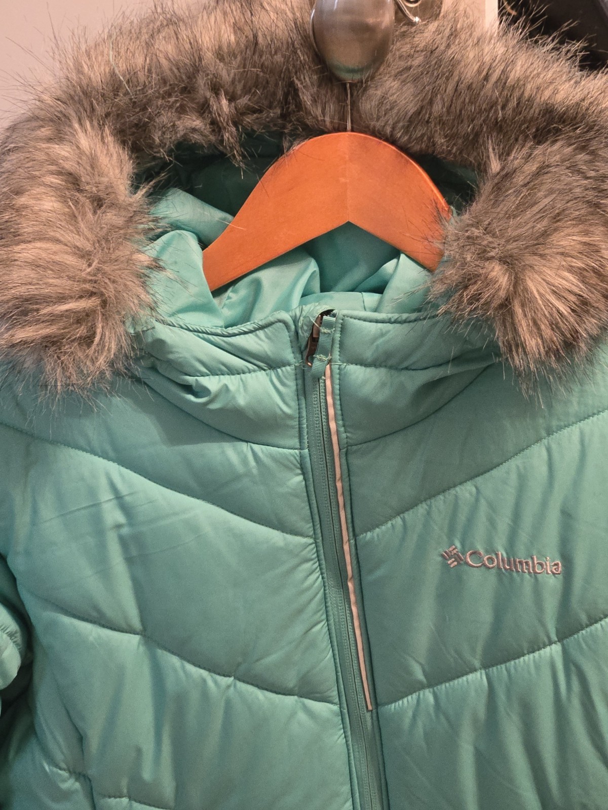 как выглядит TEAL Columbia Girls Katelyn Crest Hooded Jacket Size XL 18/20 Womens S w/fur фото