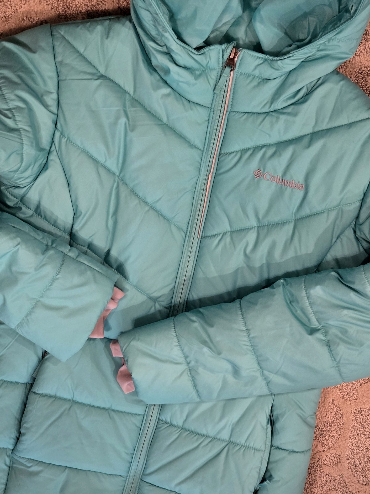 как выглядит TEAL Columbia Girls Katelyn Crest Hooded Jacket Size XL 18/20 Women