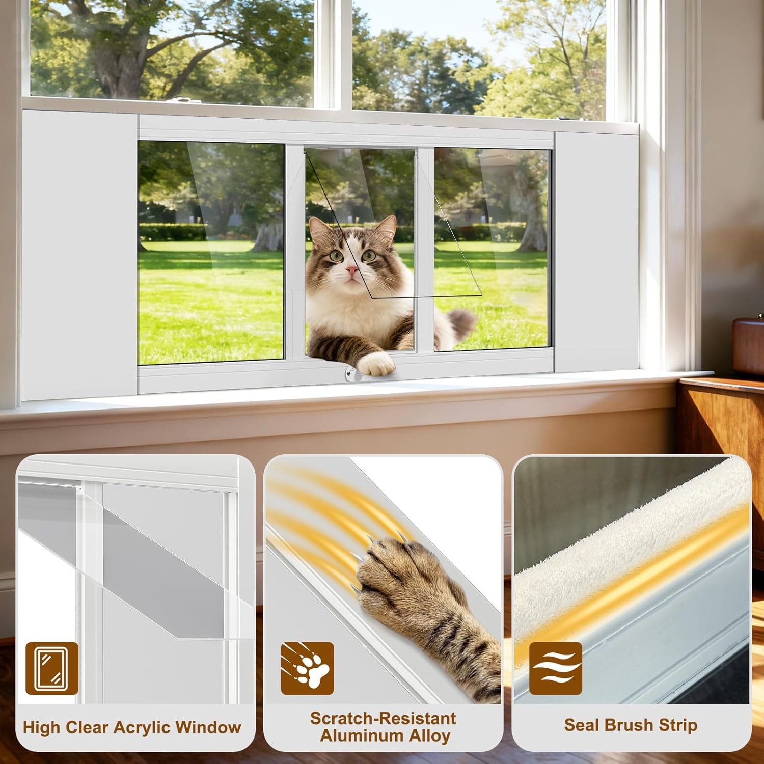 SLSY Pet Cat Door for Window, Adjustable 23-46 W Window Cat Door Insert 12.2H