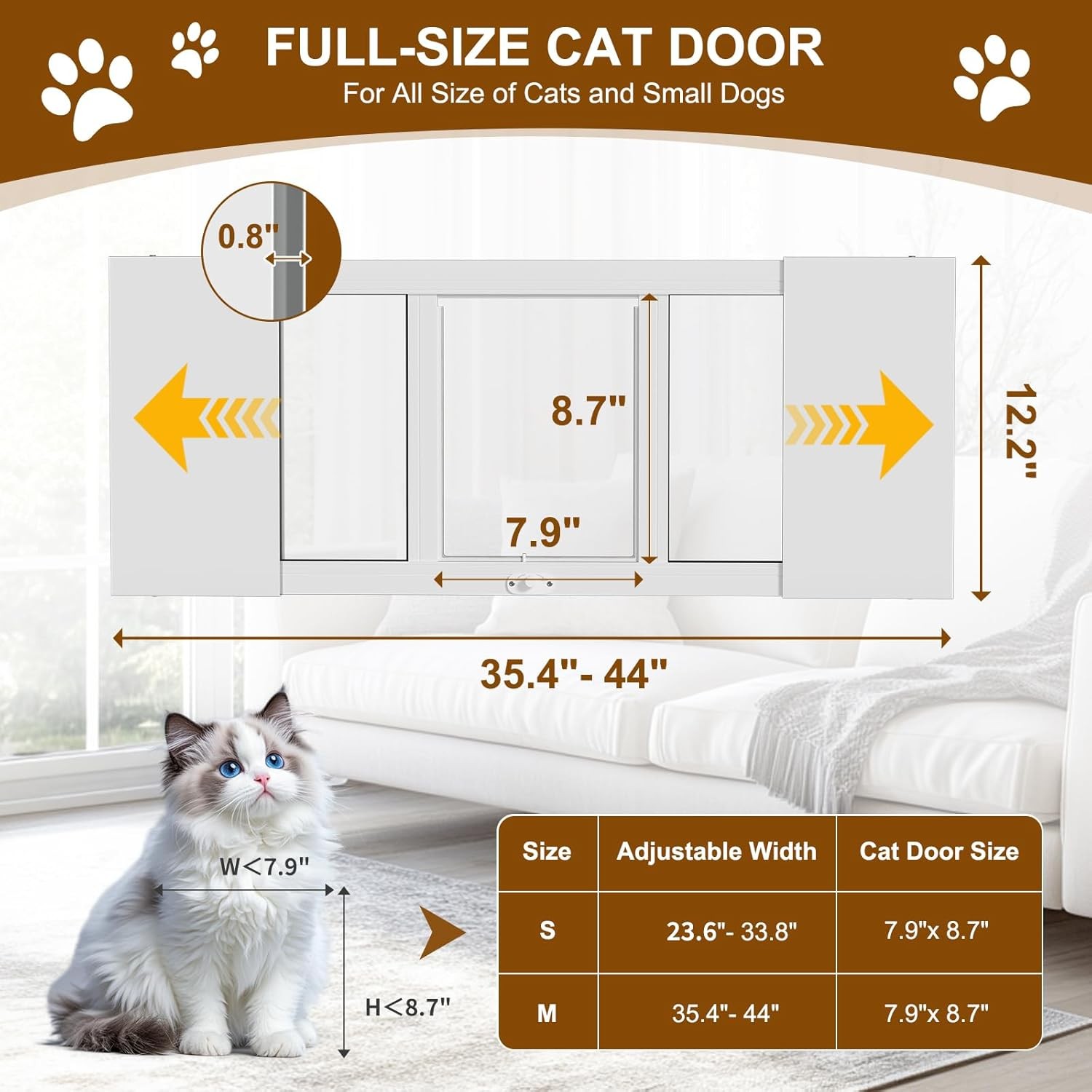 Cat Door Size: 8.7" H x 7.9" W