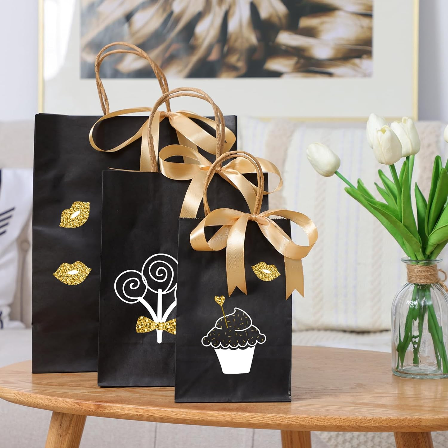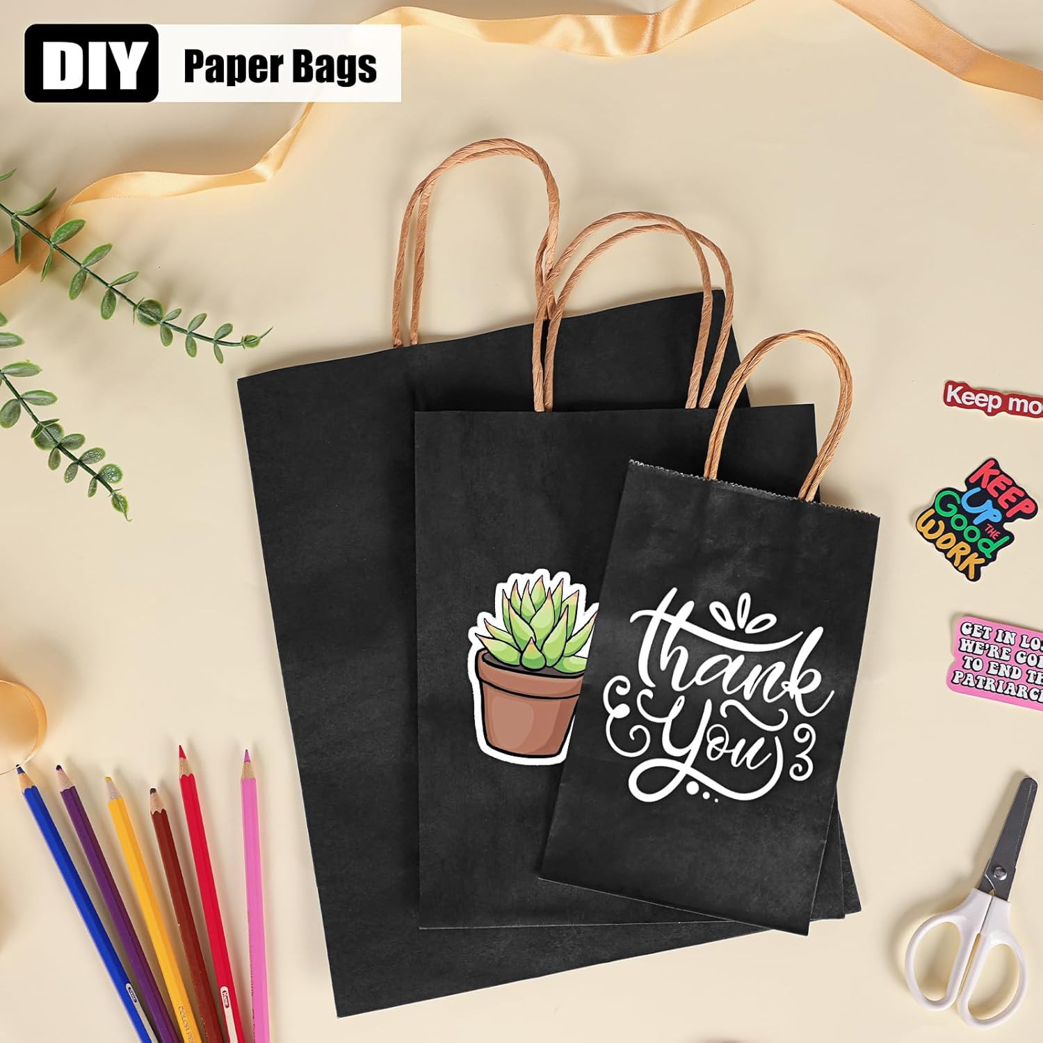 120pcs Black Paper Bags with Handles Mixed Size Bulk Kraft Paper Gift Bags fo...