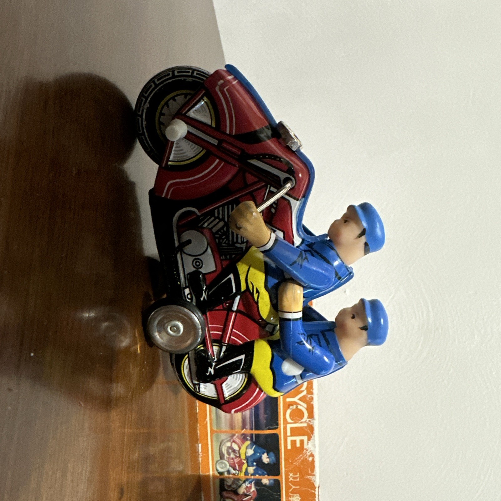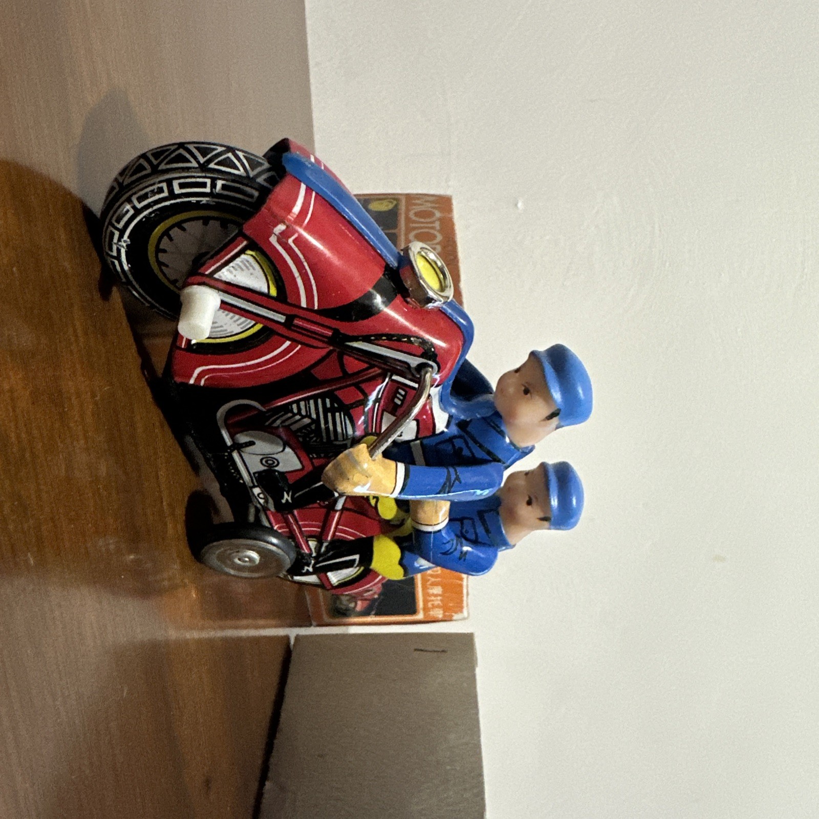 Vintage Tin Toy Motorcycle with Siren Friction MF 162 Original Box- Very nice
