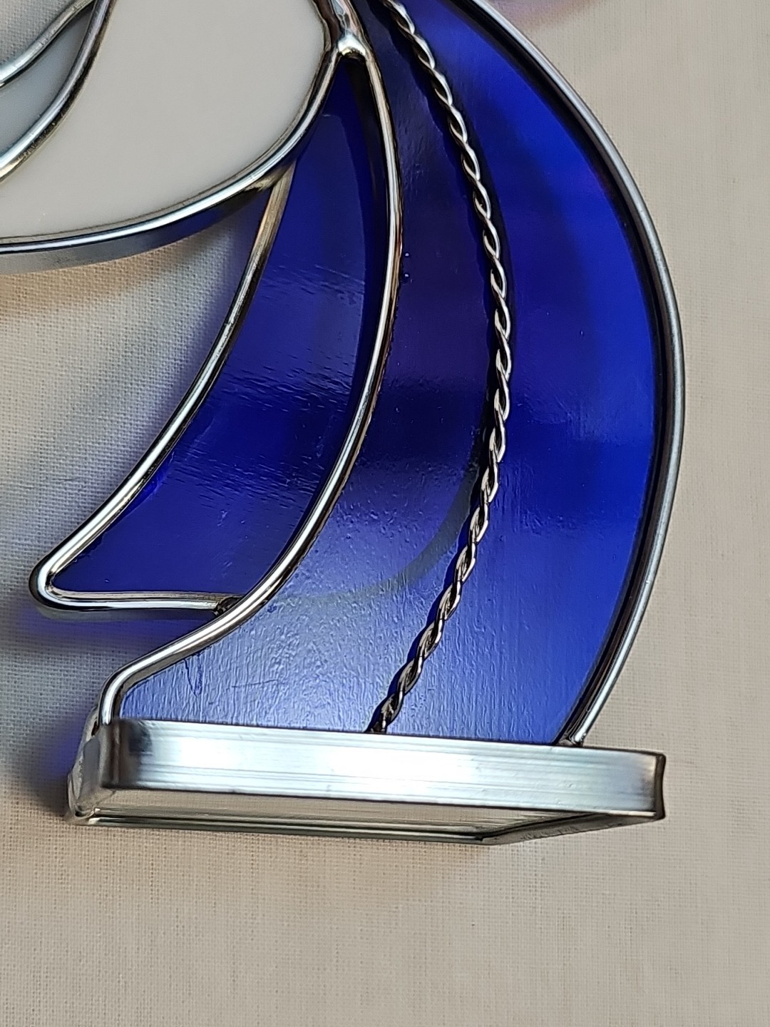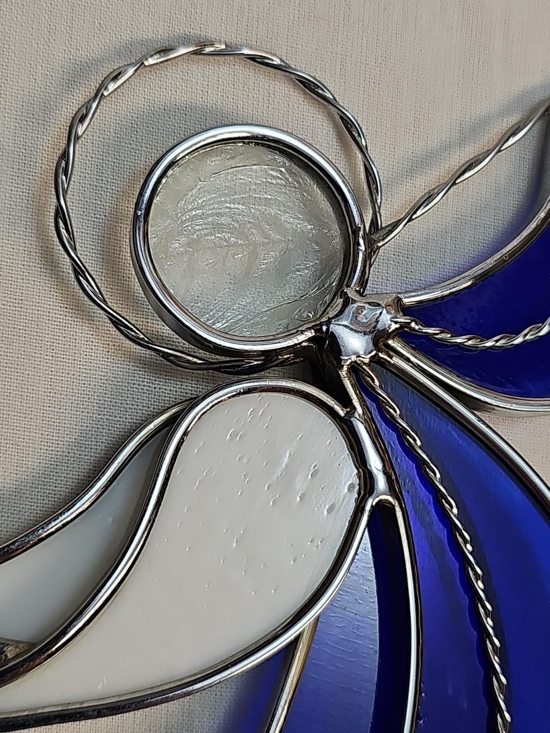 как выглядит VTG Stained Glass Angel Figurine Playing Trumpet Christmas Blue White Silver фото