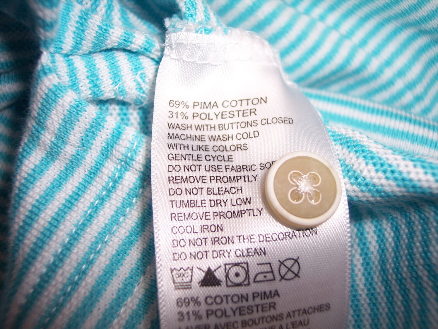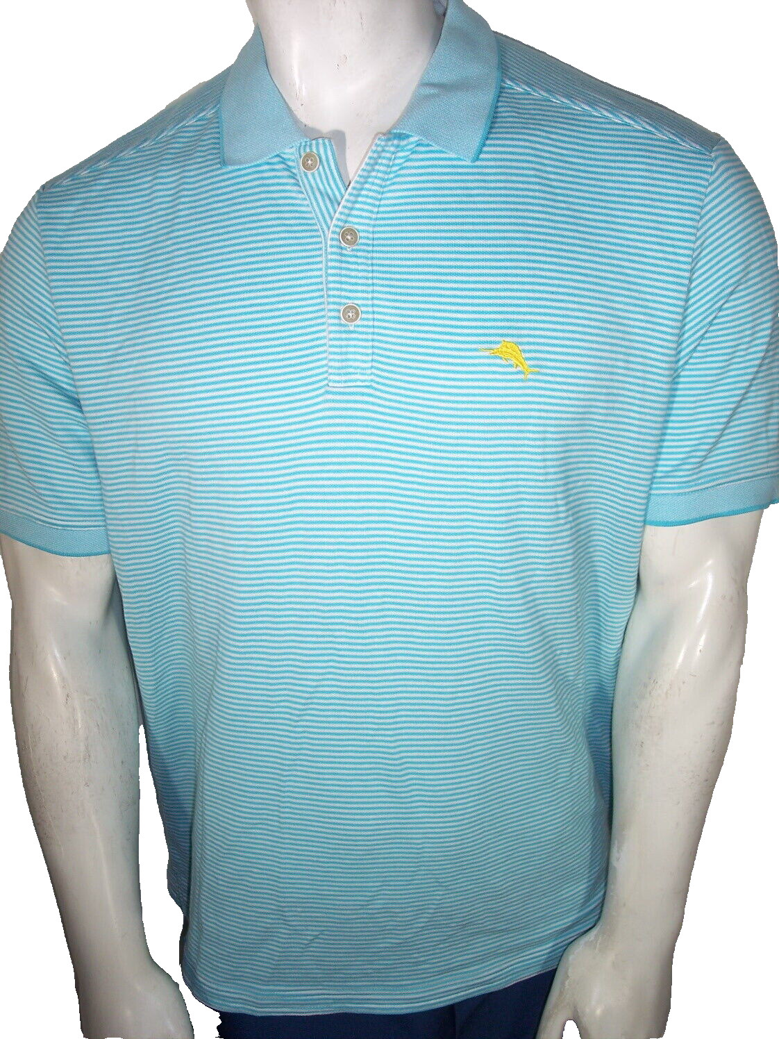 как выглядит Tommy Bahama Large Aqua Striped Poly/Cotton Polo Shirt Marlin Logo фото
