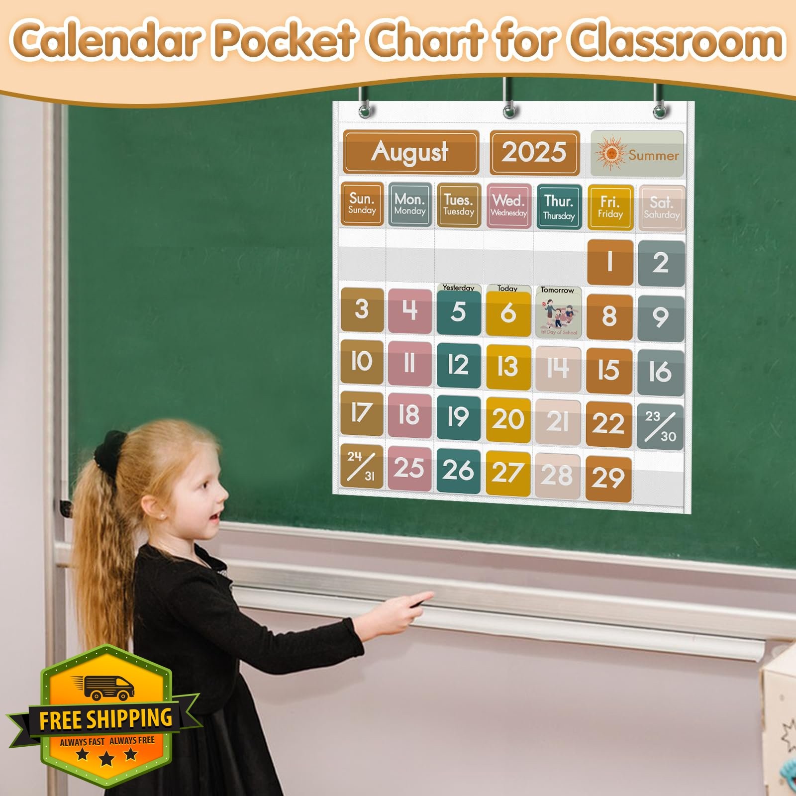 Classroom Calendar Pocket Chart Boho Decor Learning Supplies