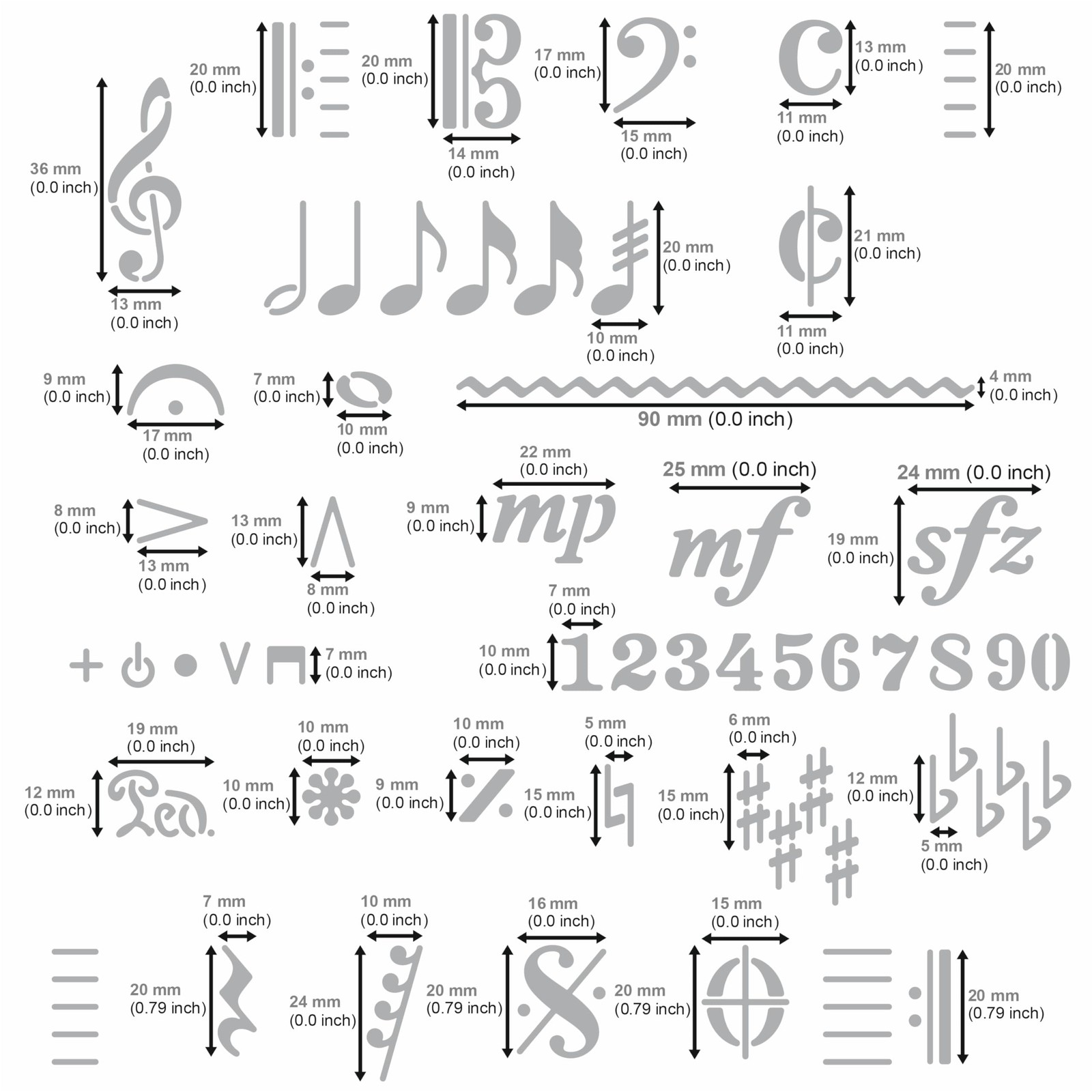 Metal Music Notes Stencil Template Large
