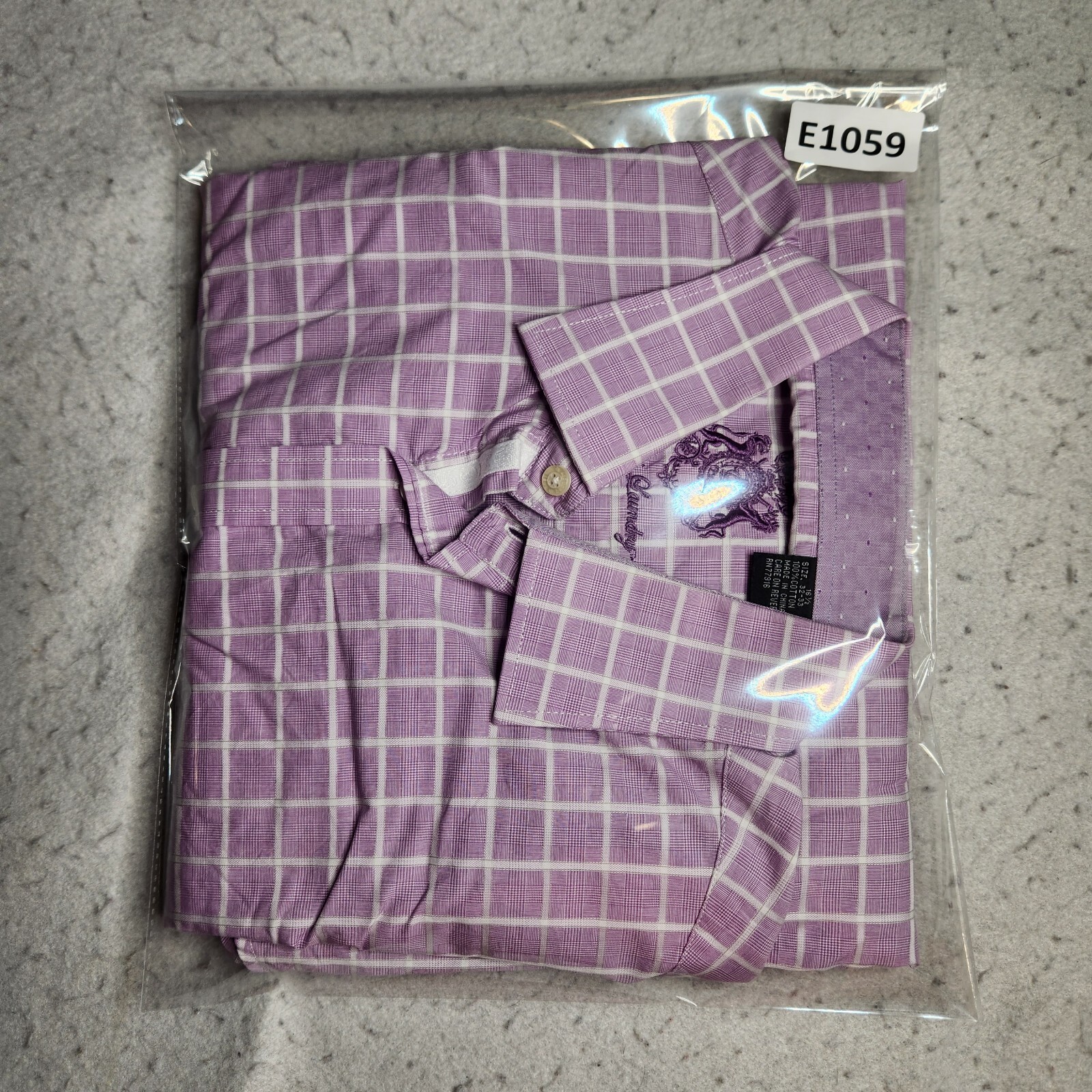 English Laundry Mens Shirt Size 16.5 x 32-33 Purple Check Button-Up Long Sleeve