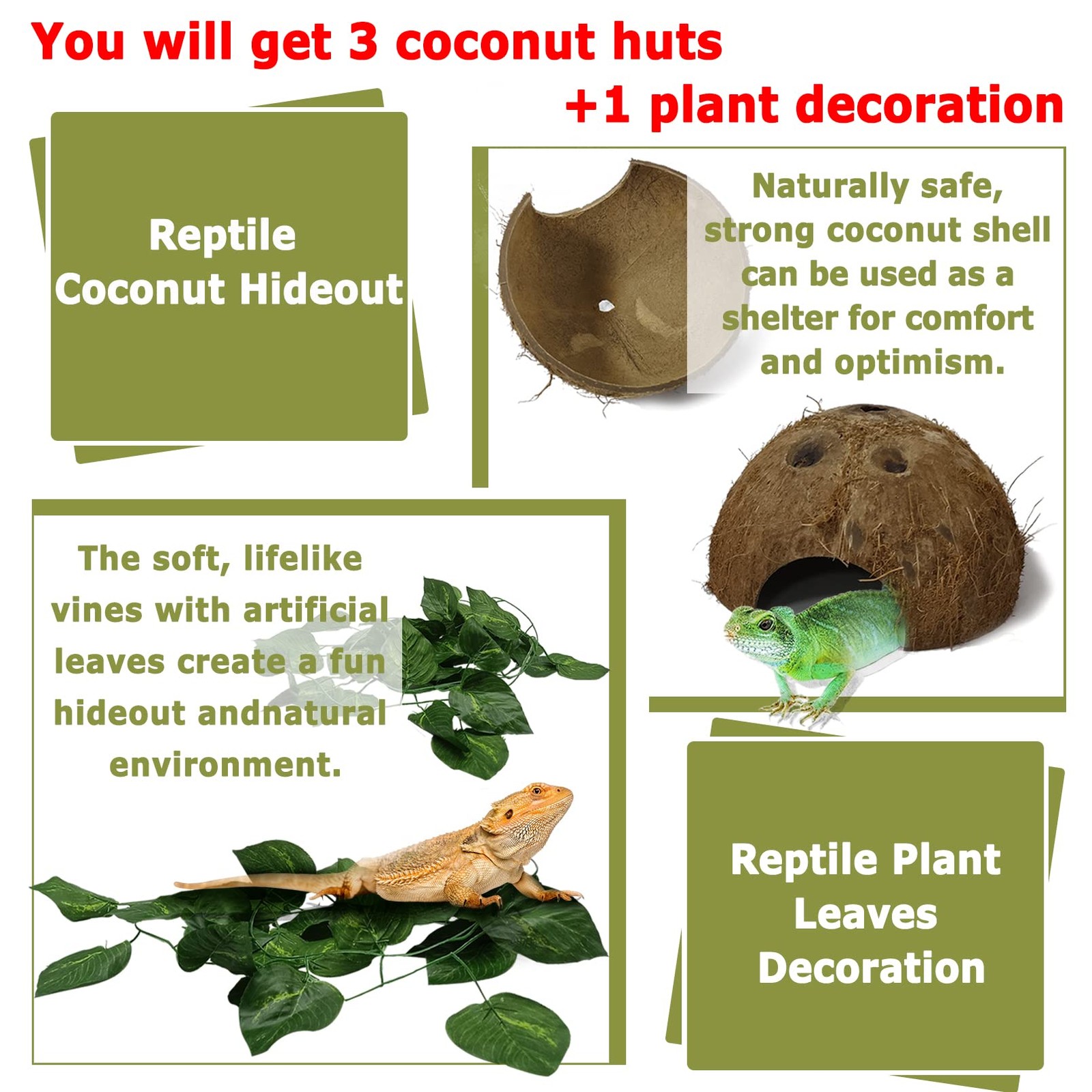 4 PCS Reptile Hideouts Natural Coconut Shell Hut Hermit Crab Climbing Cave