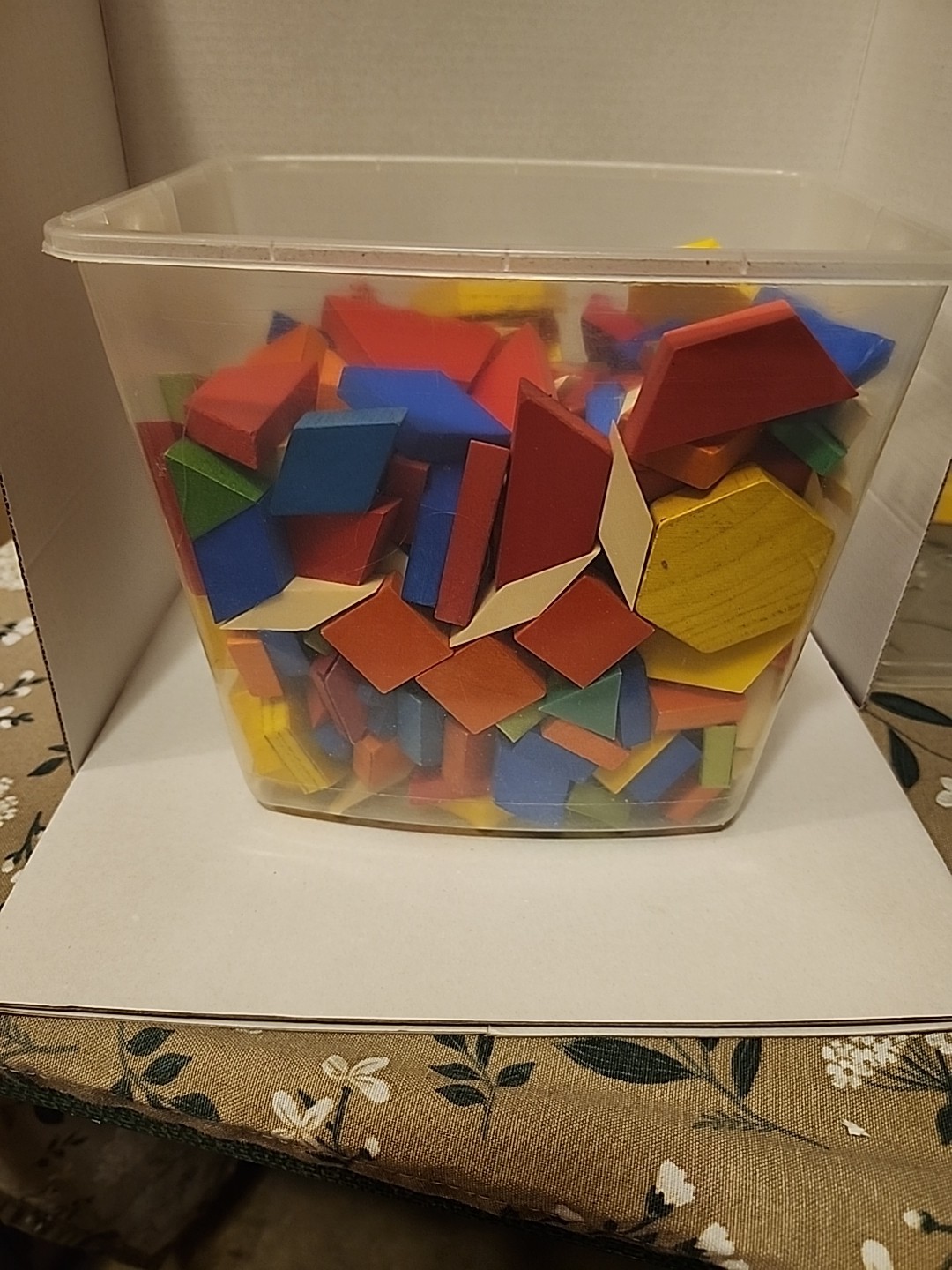Geometric Pattern Blocks Lot Multi Color Shapes Wood Wooden For Math