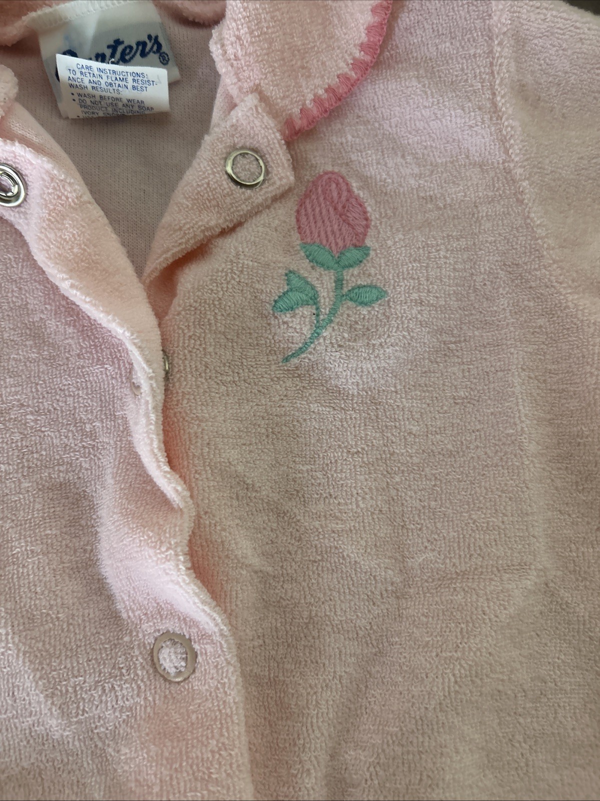 VTG Carters Footie Granny Core Pajamas Baby Newborn Romper USA Pink Rose 11lbs S