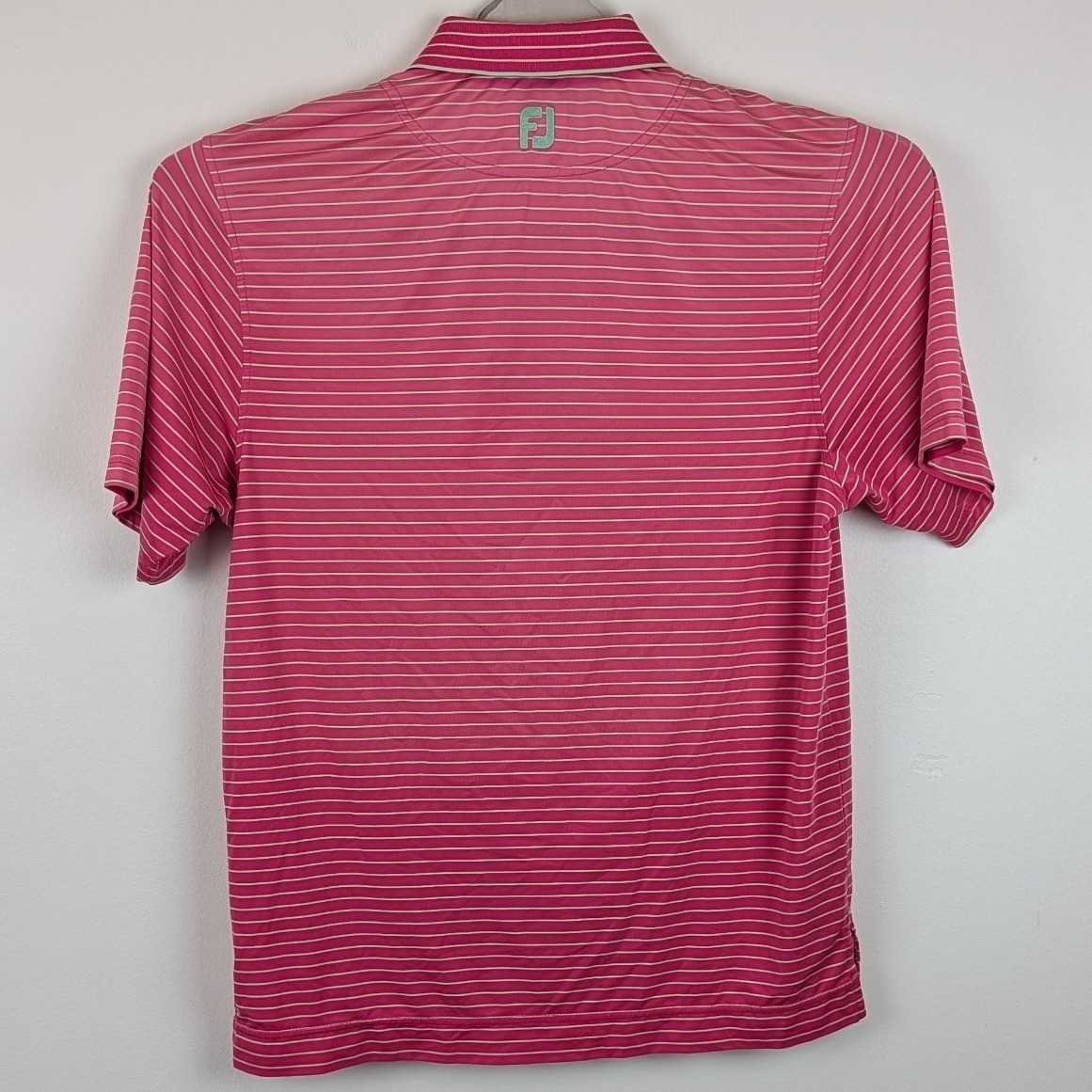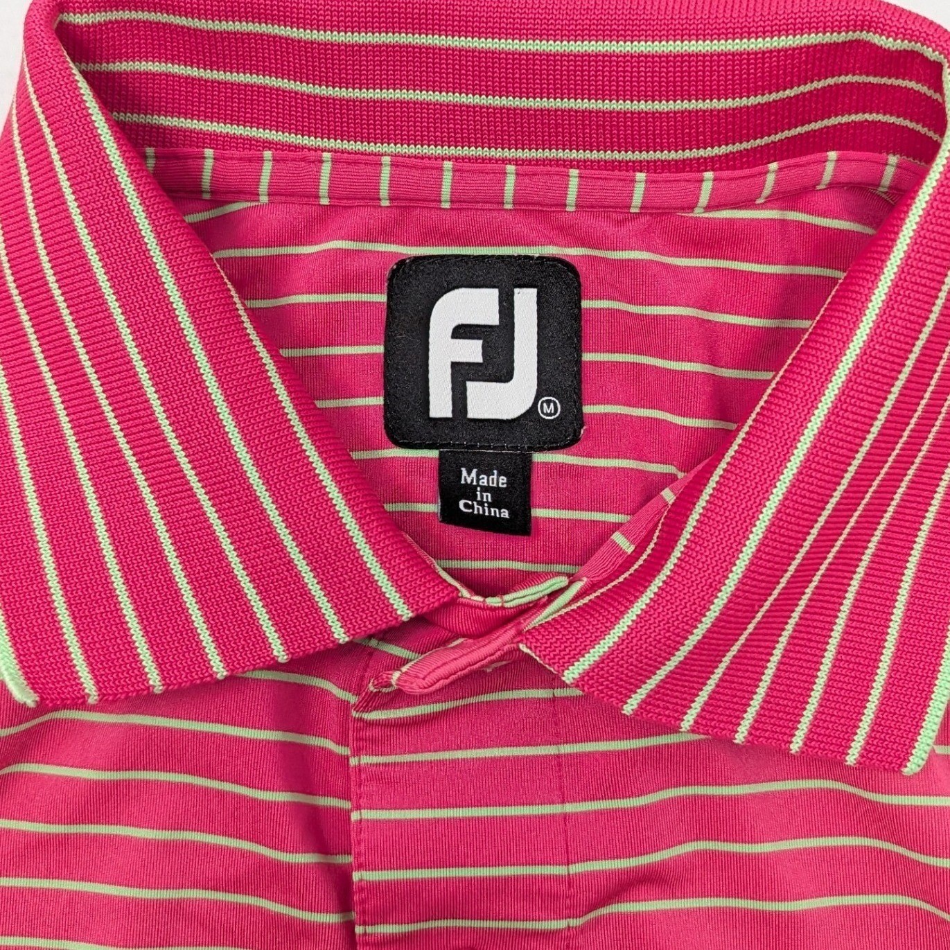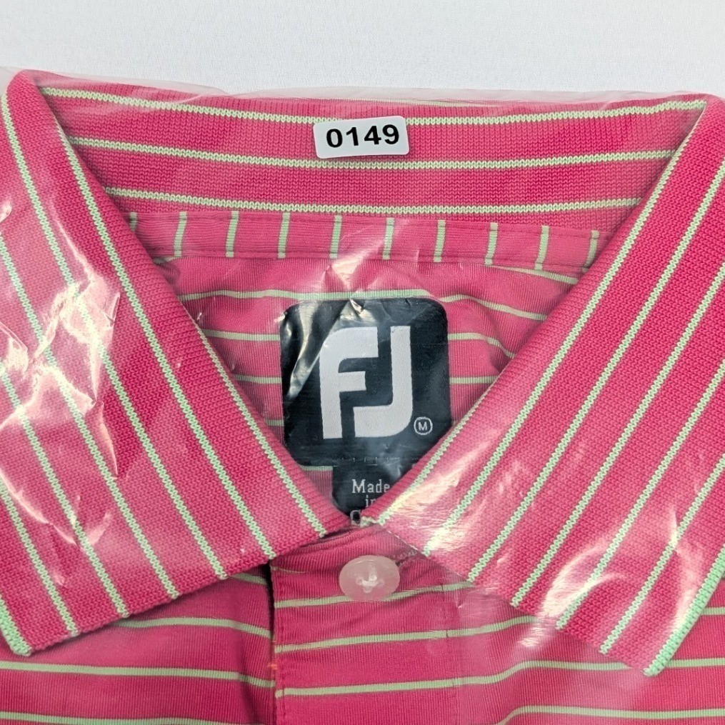 FootJoy Men's Medium Pink Mint Green Striped Golf Polo Shirt Short Sleeve