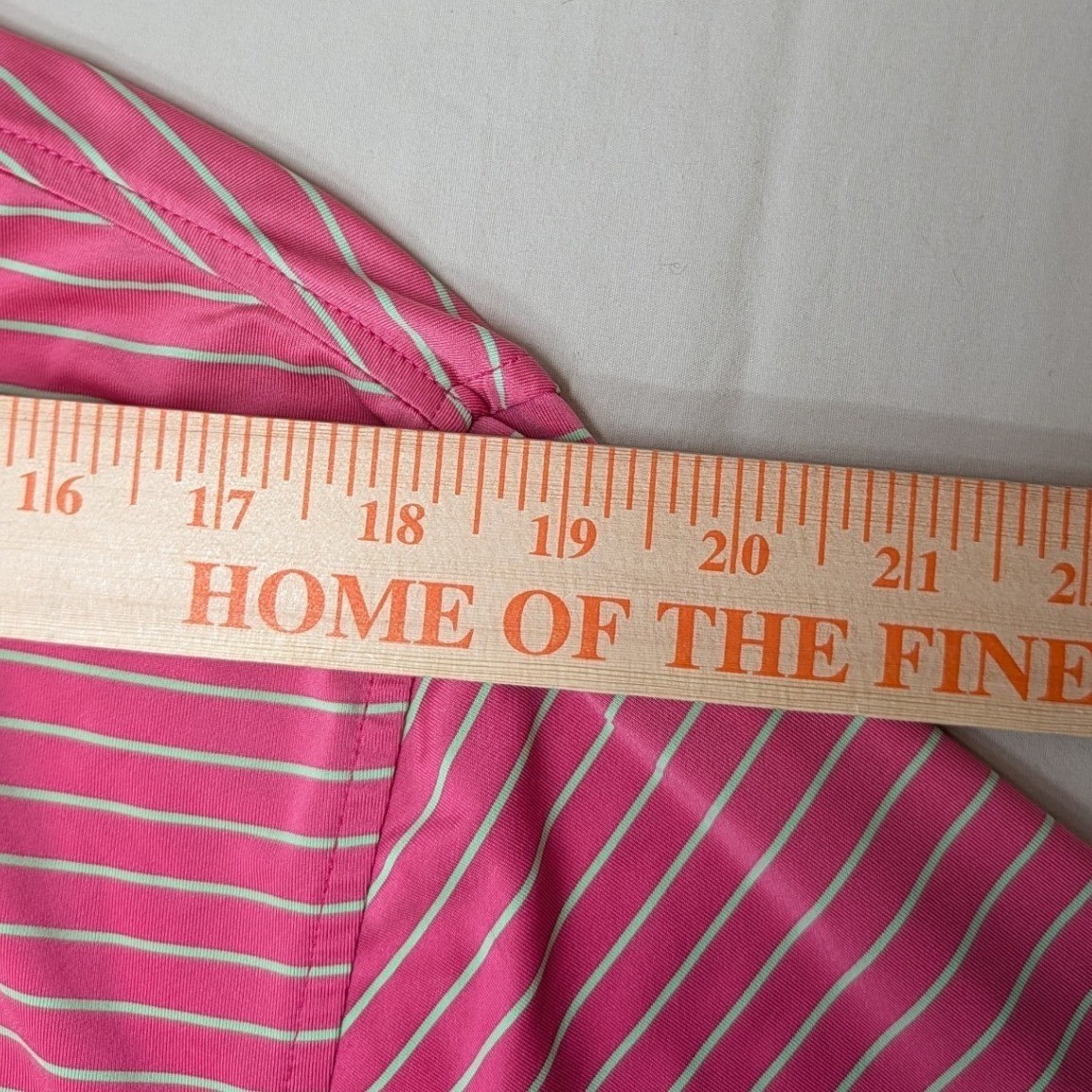 как выглядит FootJoy Mens Medium Pink Mint Green Striped Golf Polo Shirt Short Sleeve фото