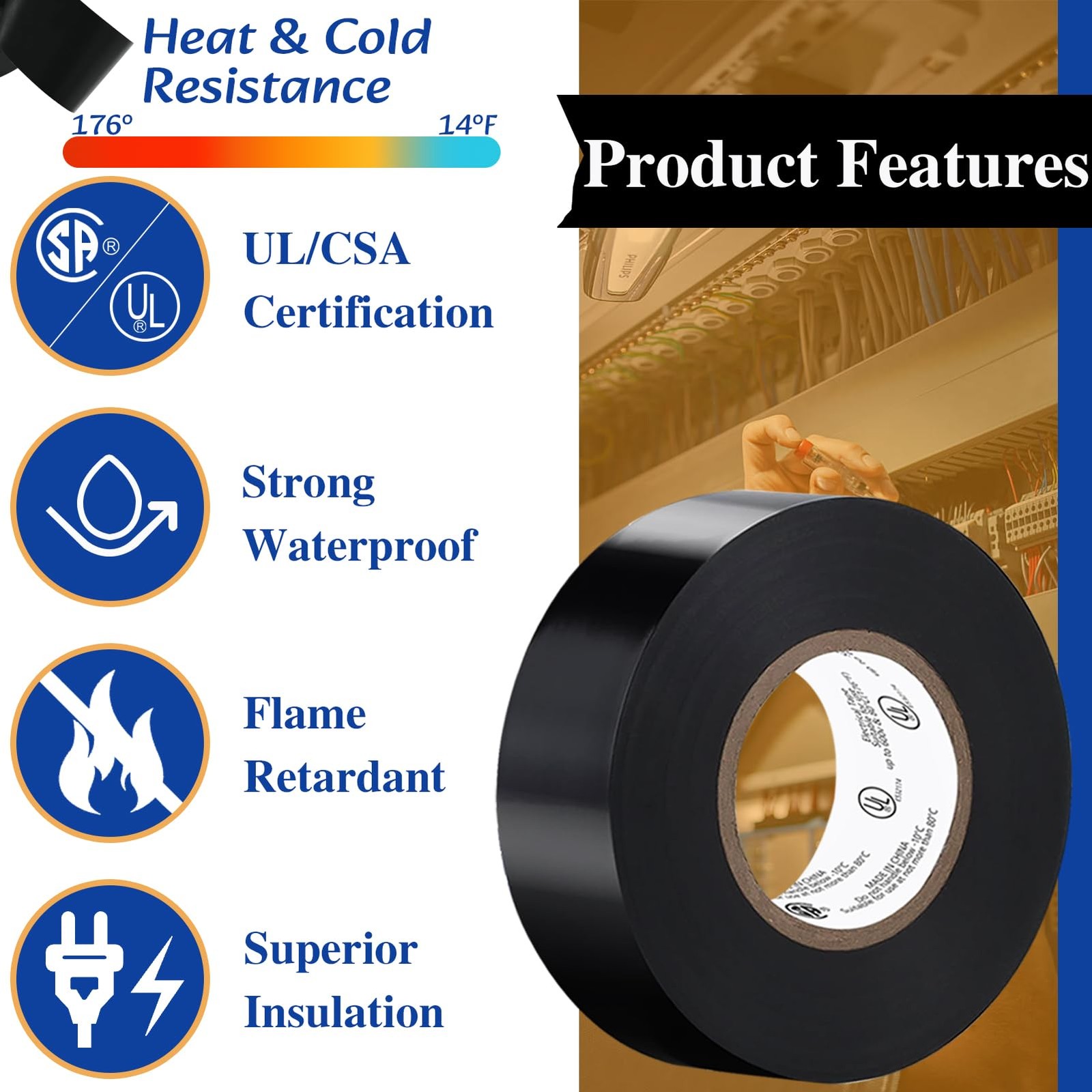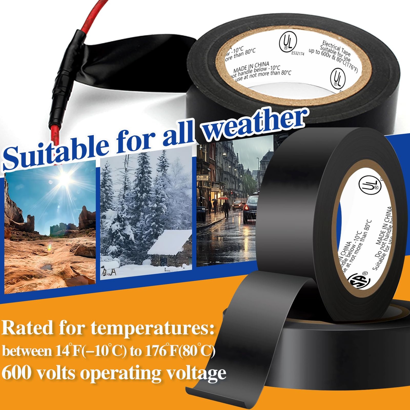 0.75 in x 66 FT UL/CSA Listed Black Electrical Tape 7 mils -600V, 4 Pack Elec...