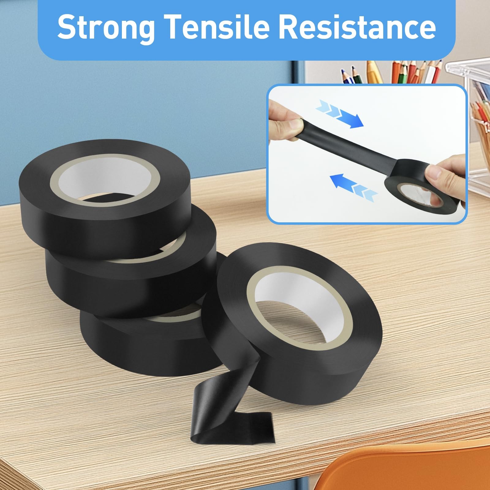 Electrical Tape 4pcs 0.7inch x 66ft, Professional Black Electric Tape for Hom...