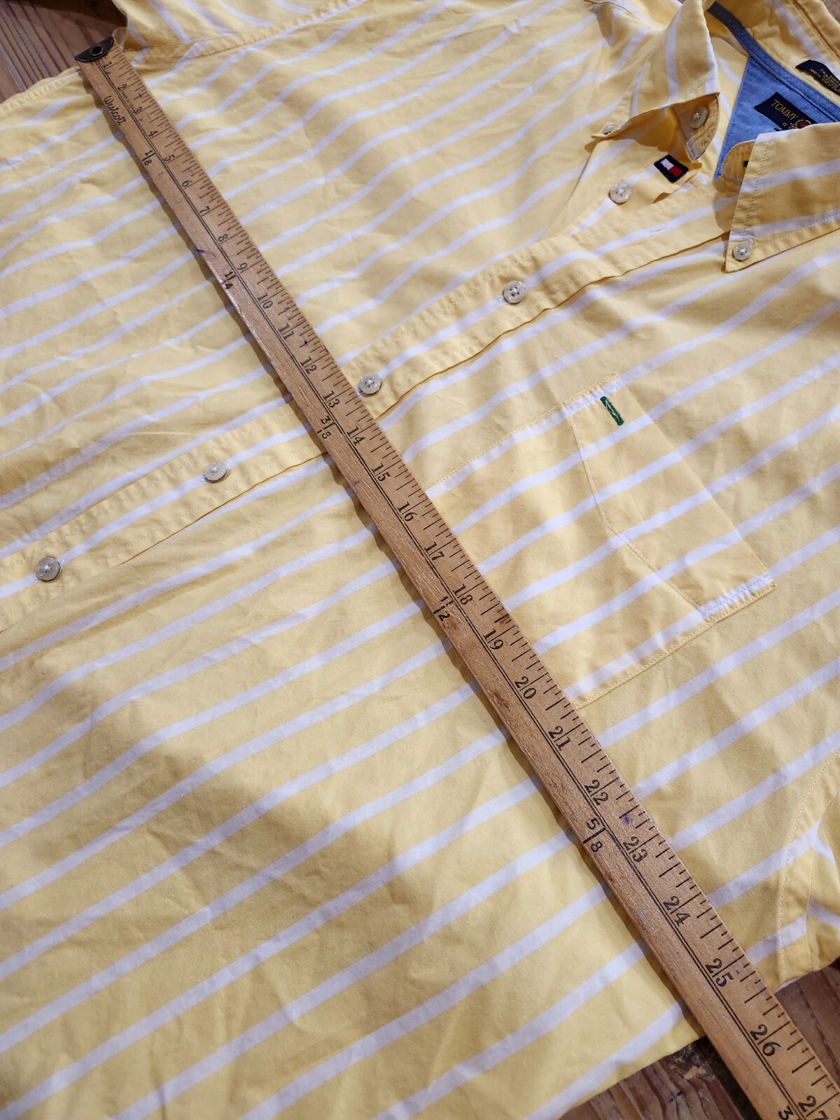 TOMMY HILFIGER GOLF Shirt Mens XL Short Sleeve Button Up Striped Yellow Cotton