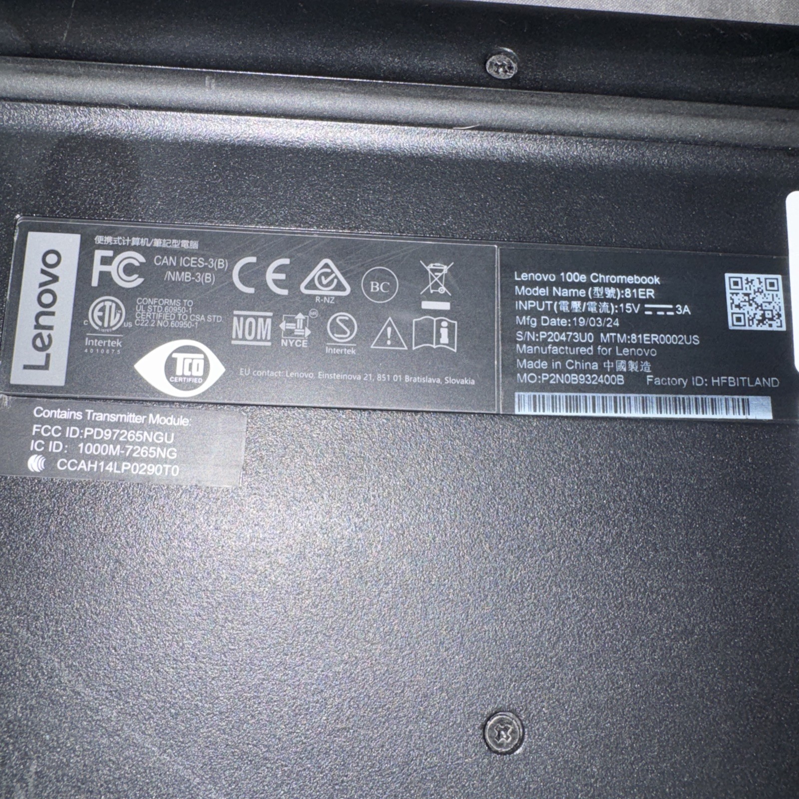 Lenovo 100e Chromebook 1st Gen 11.6 4GB RAM, 1.10 GHz, 16GB eMMC