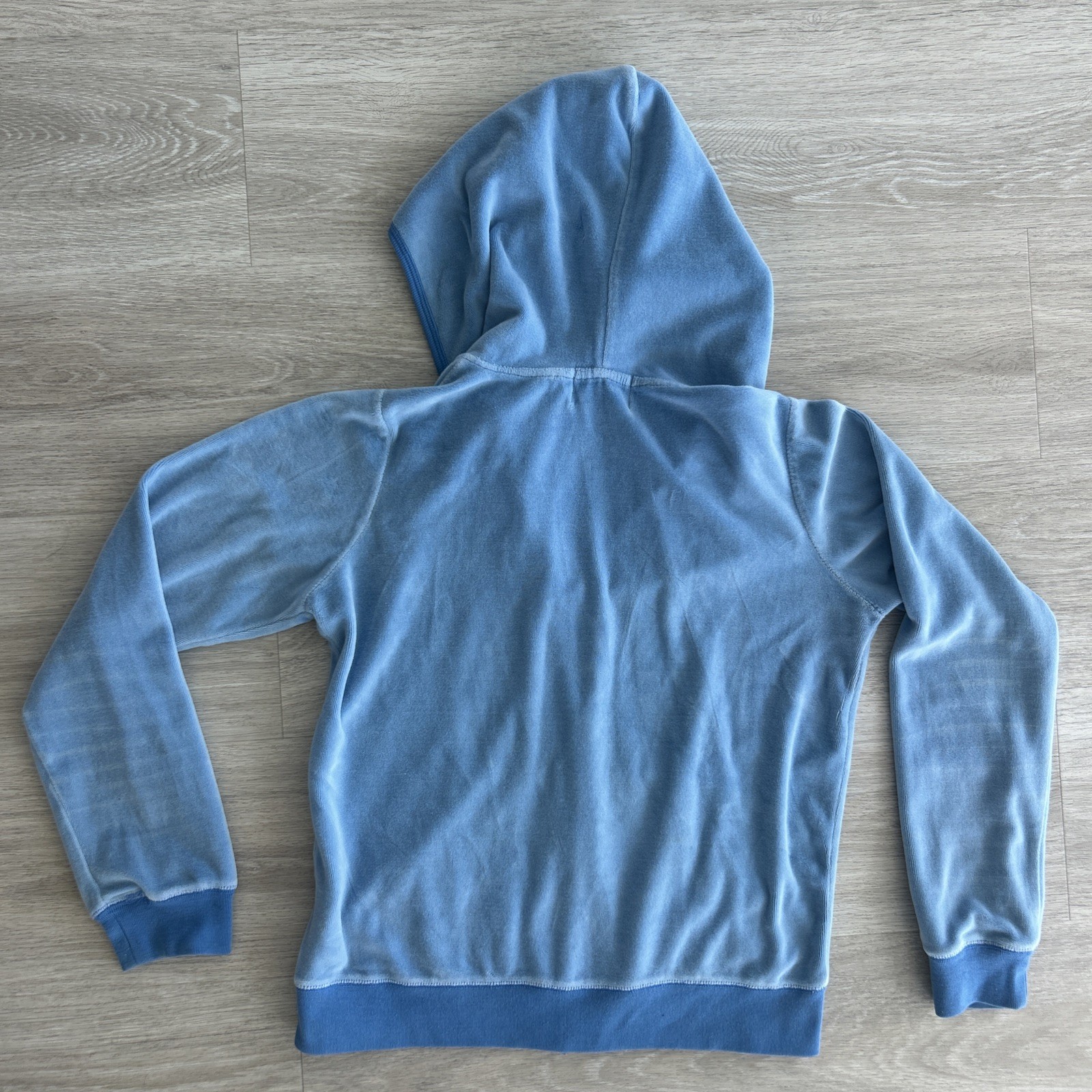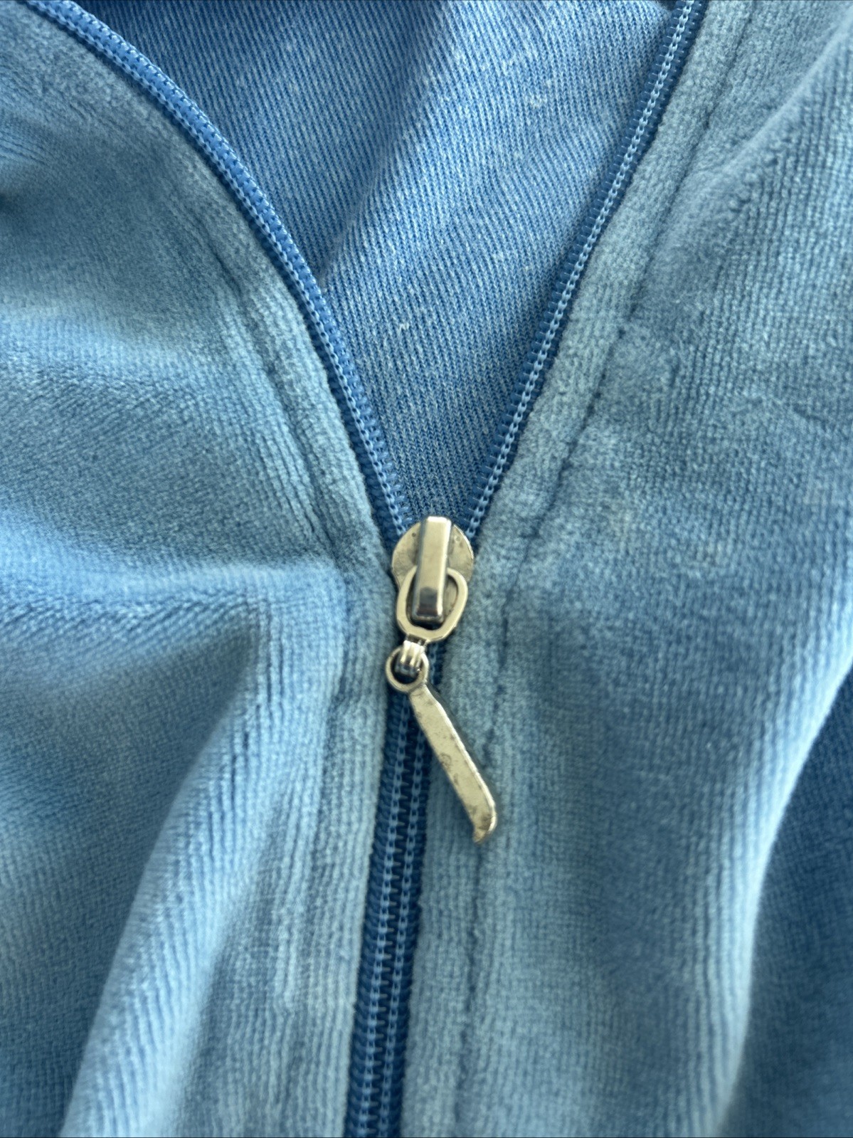 как выглядит Juicy Couture Light Blue Velour Zip Hoodie L Green Crest Tag Made in USA Y2K VTG фото