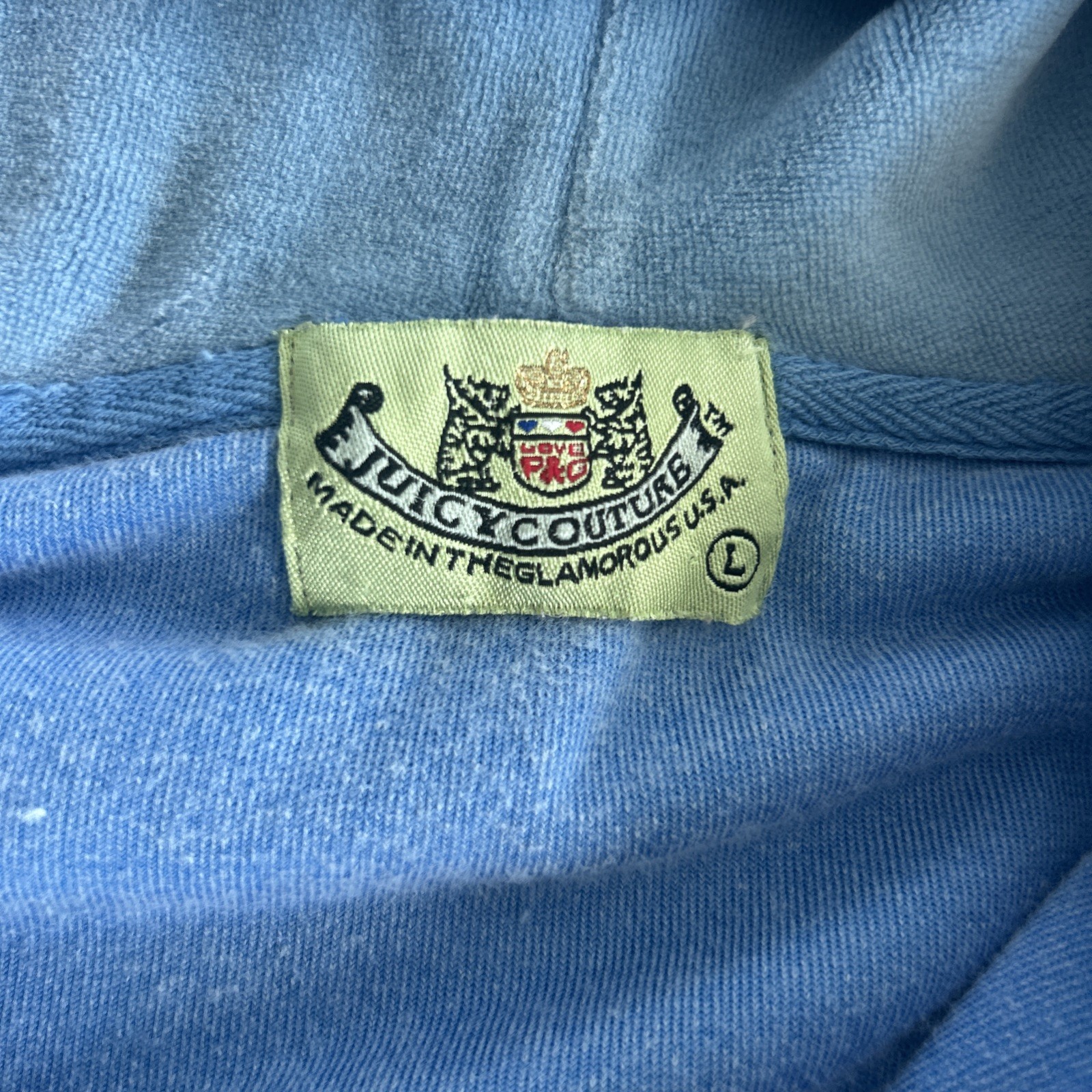 Juicy Couture Light Blue Velour Zip Hoodie L Green Crest Tag Made in USA Y2K VTG
