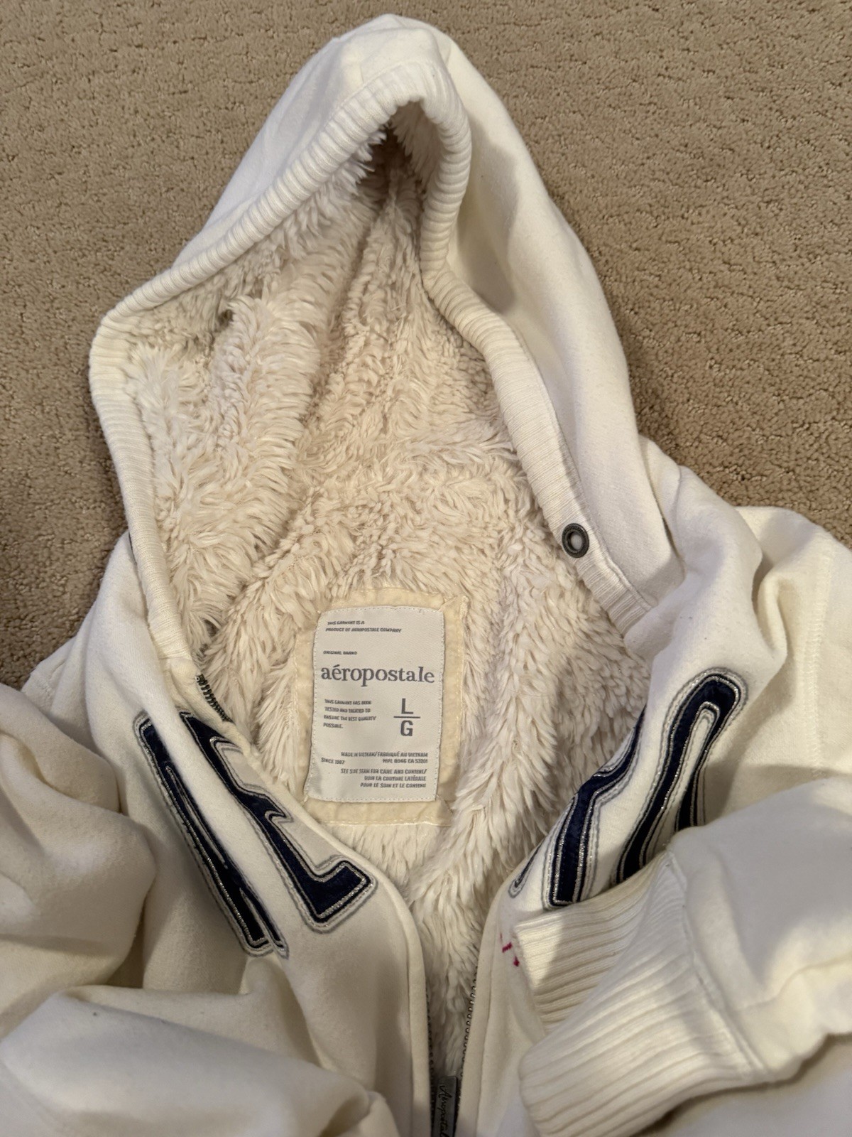 Y2K Aeropostale Hoodie Faux Fur Hoodie Zip up Sz L B35