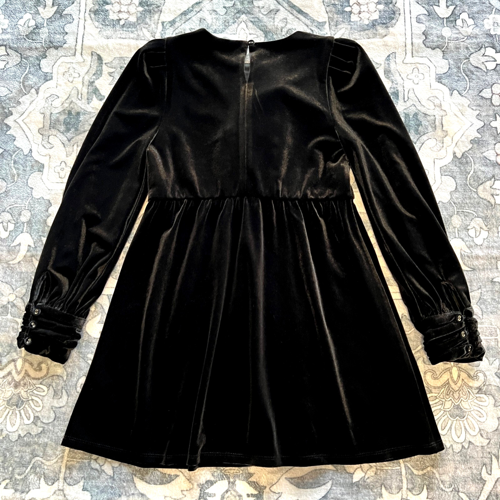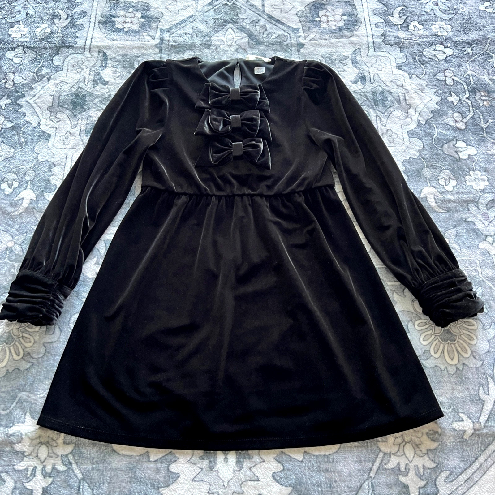 как выглядит Dillards A Loves A Velour Velvet Dress Girl 8-10 Medium Black 3 Bows Party Dance фото