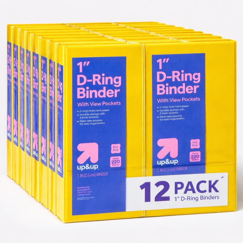 12-Pack Yellow 1-Inch Clear View 3-Ring Binders up up, 220-Sheet Capacity
