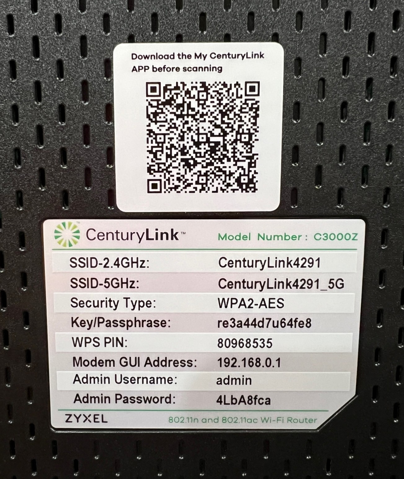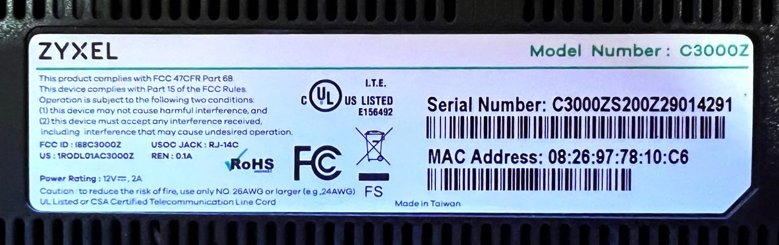 Модель: CenturyLink ZyXEL C3000Z