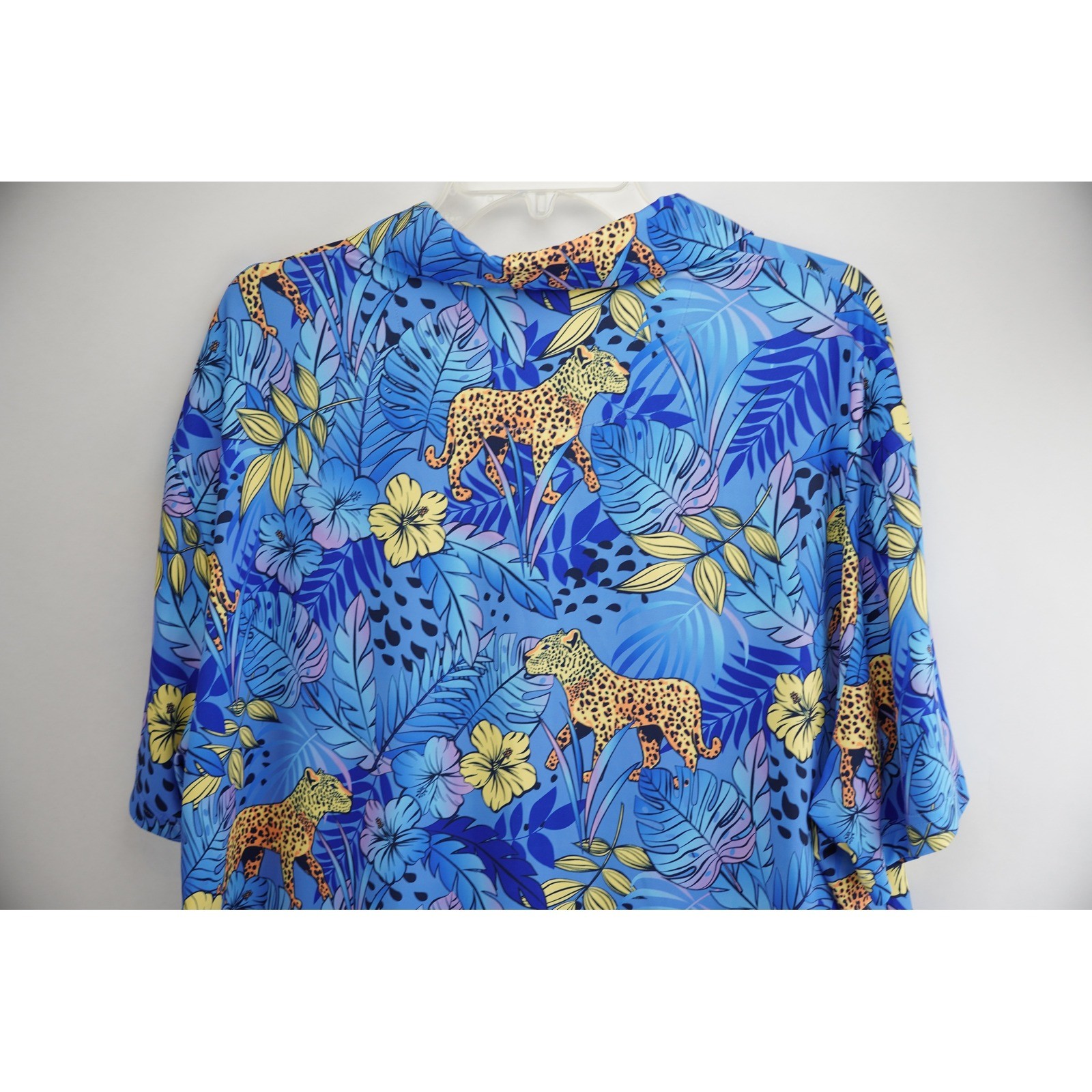 как выглядит Birdie Bound Polo Shirt Mens 3XL Blue Leopard Tropical Print Stretch фото