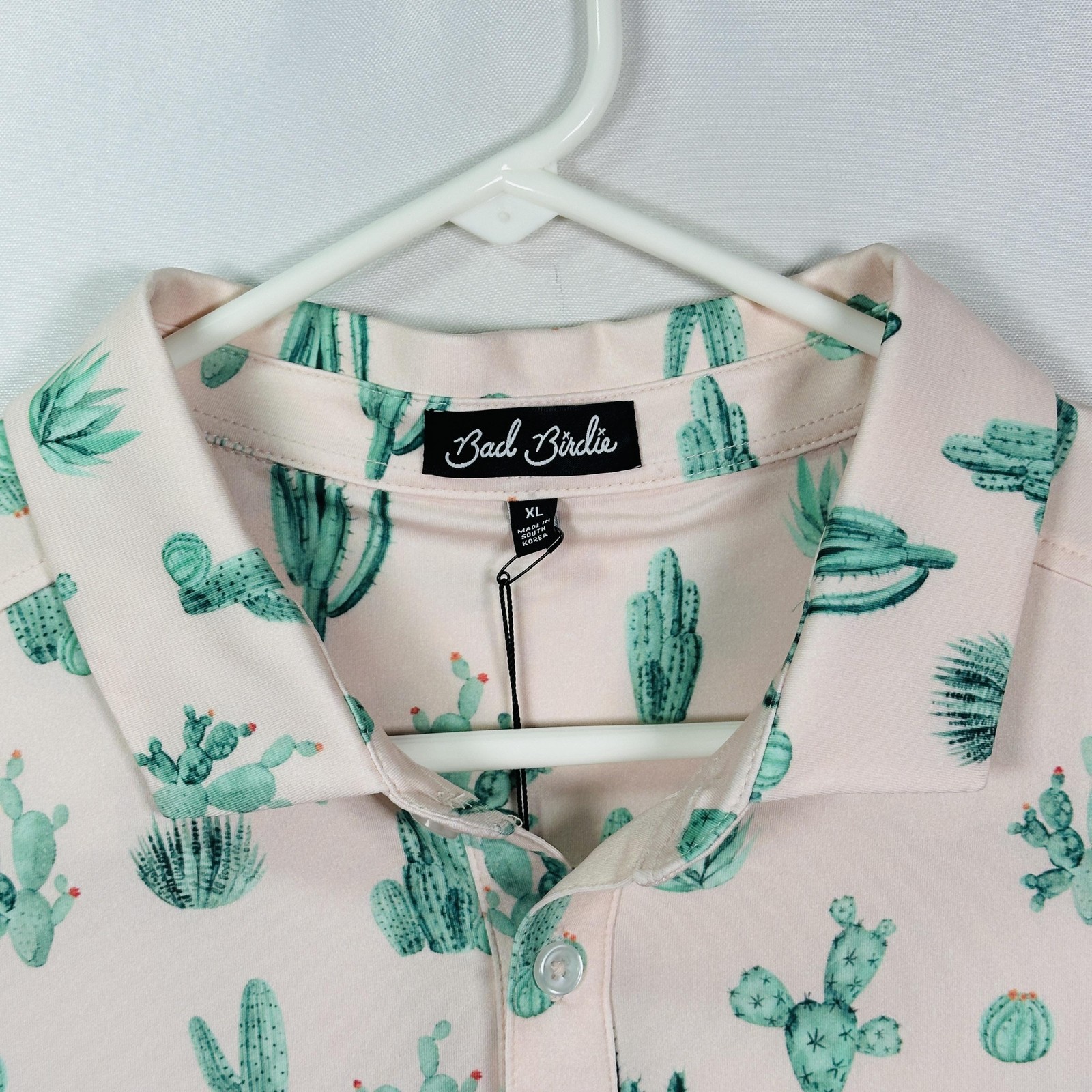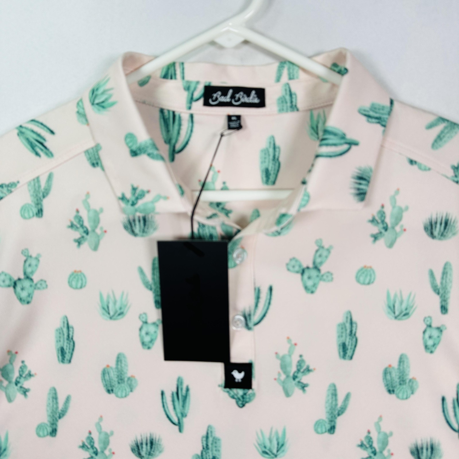 Bad Birdie Golf Polo Shirt Mens XL Pink Green Thorn in Your Side Cactus NEW
