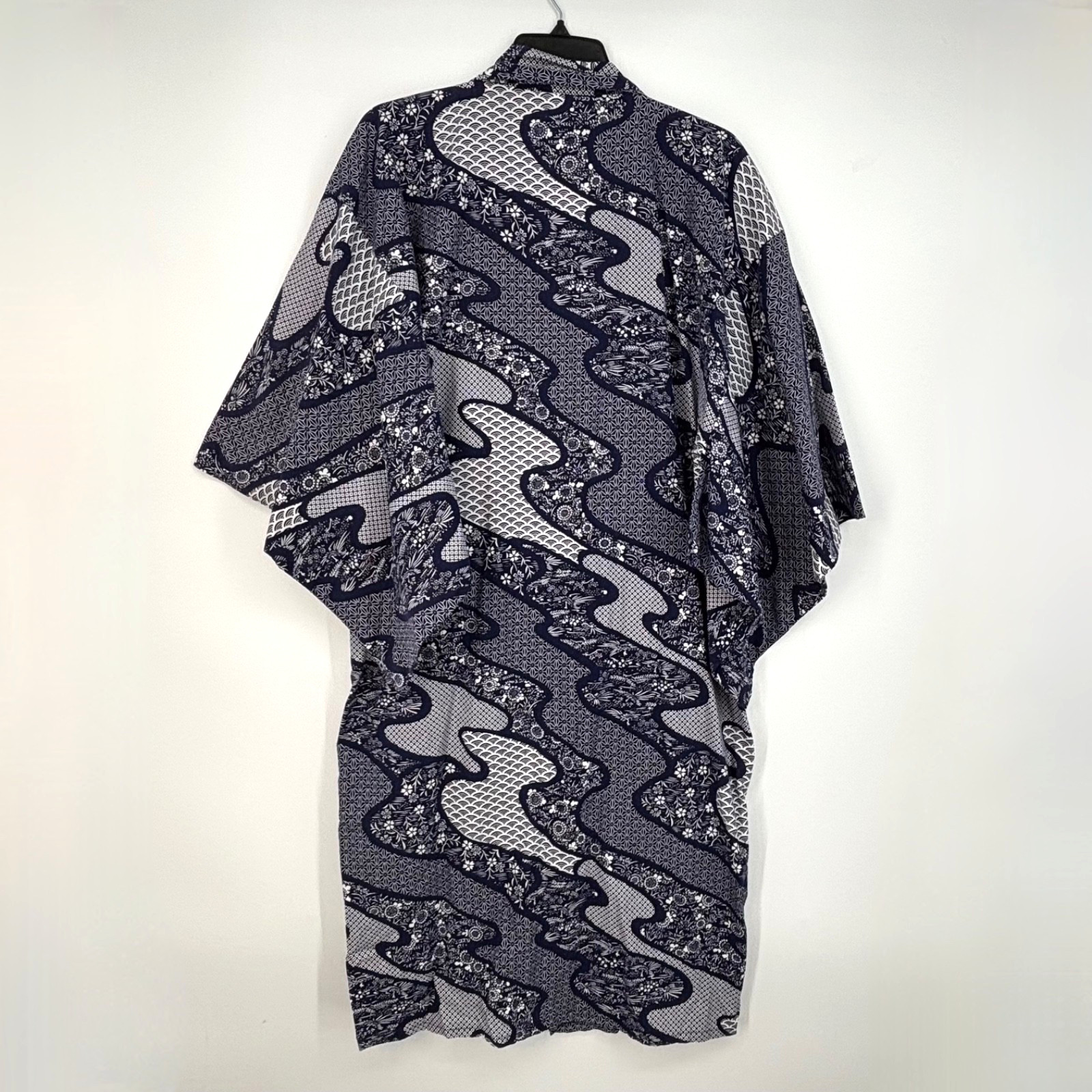 In Tokyo Adult Large Wrap Kimono Robe 100 Cotton Blue White Multi Print Belted