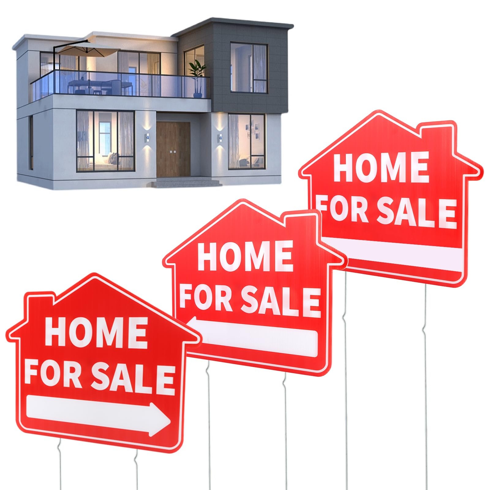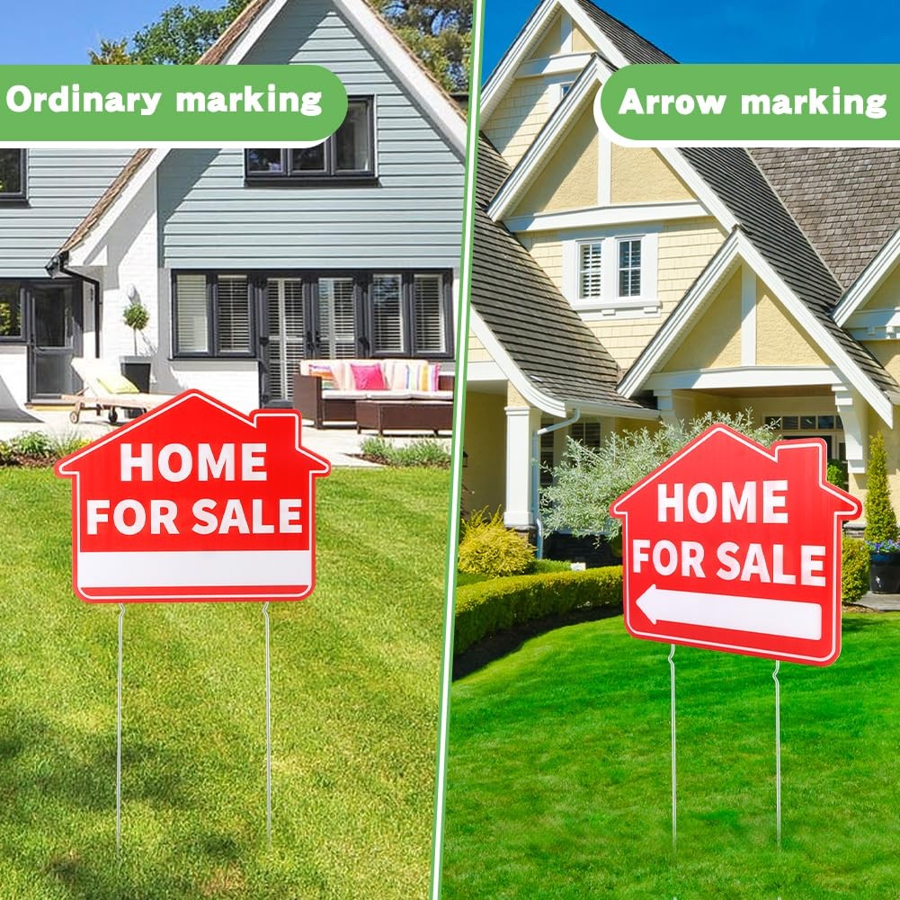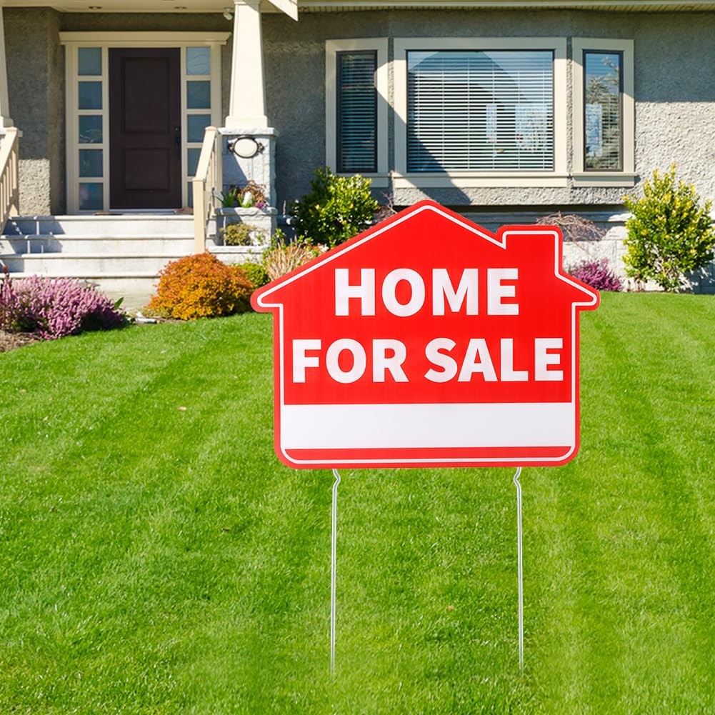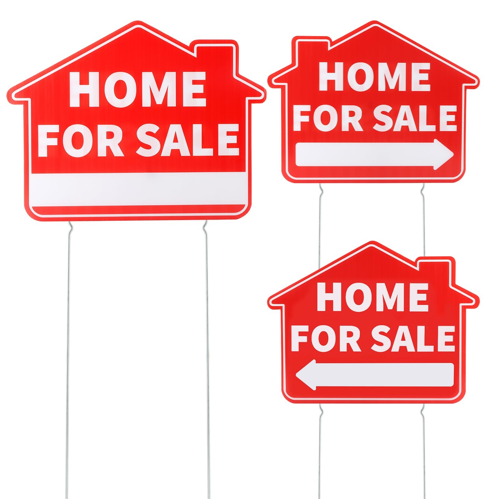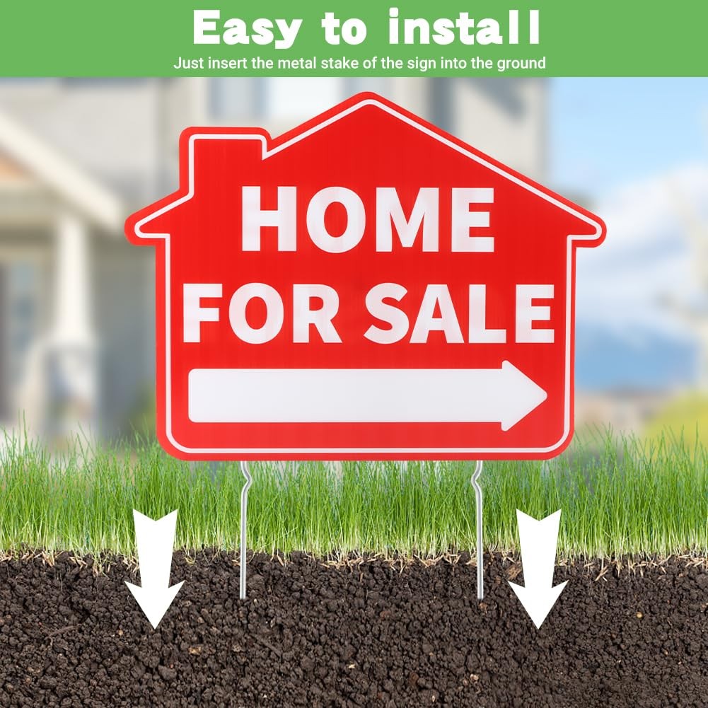 3 Pack Home For Sale Signs with Metal Stakes, 17x13 Double-Sided Weatherpr...