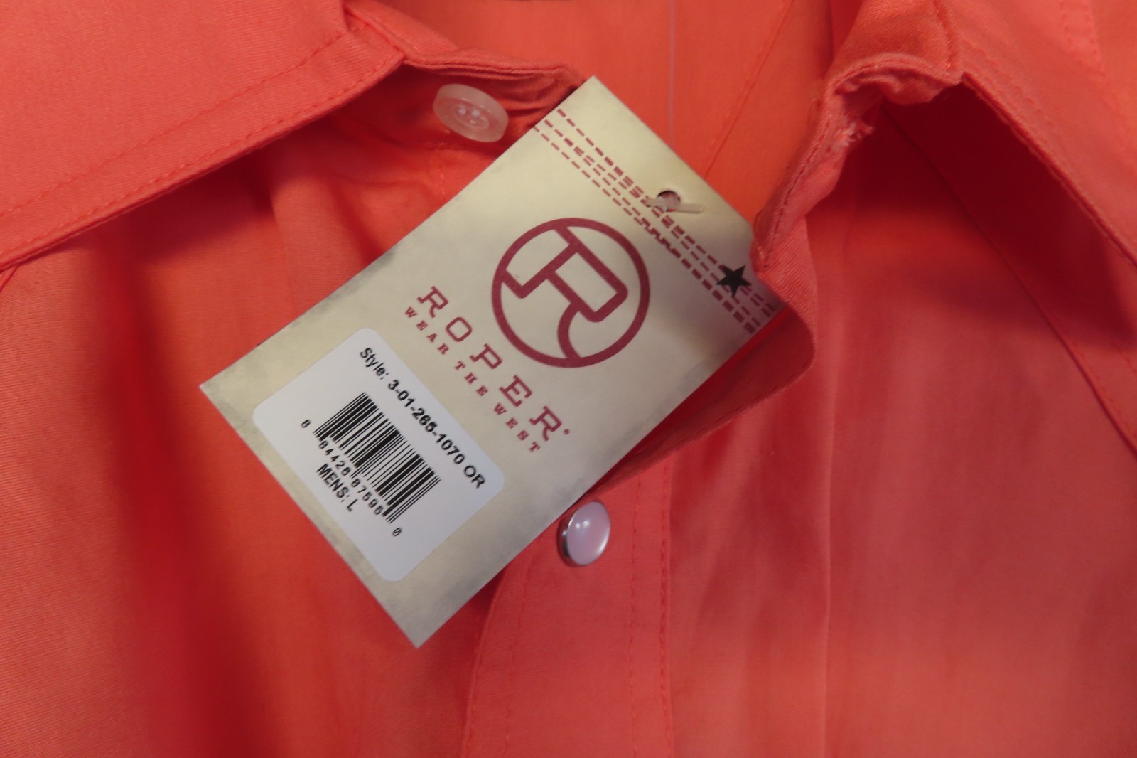 Roper Western Shirt Mens L/S Snap Orange 03-001-265-1070 OR sz Large NEW w/TAGS