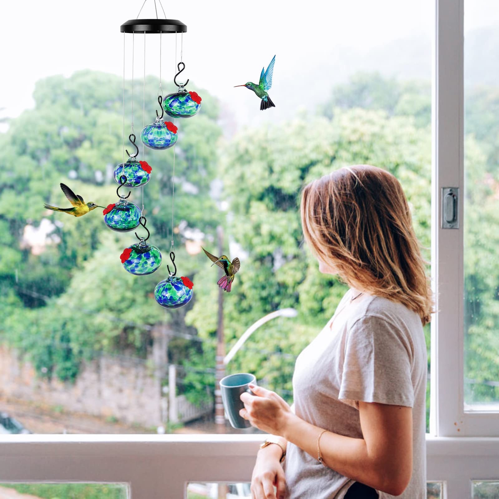 Charming Wind Chimes Hummingbird feeders for Outdoors Hanging ant and bee Pro...