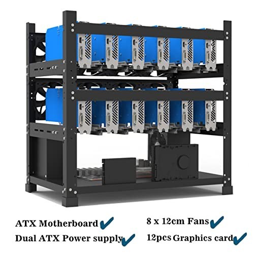 12GPU Mining Rig Frame - Steel Open Air Case for Crypto Mining, Dual PSU Support