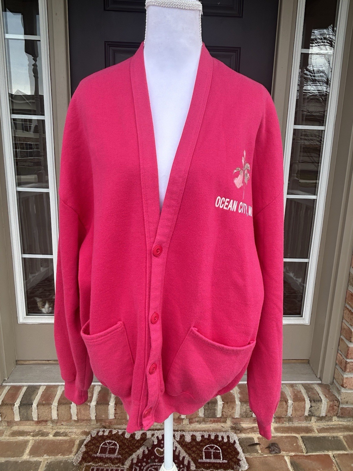 как выглядит Vintage 80s Jerzees Hot Pink Sweatshirt Cardigan Ocean City Maryland L XL фото