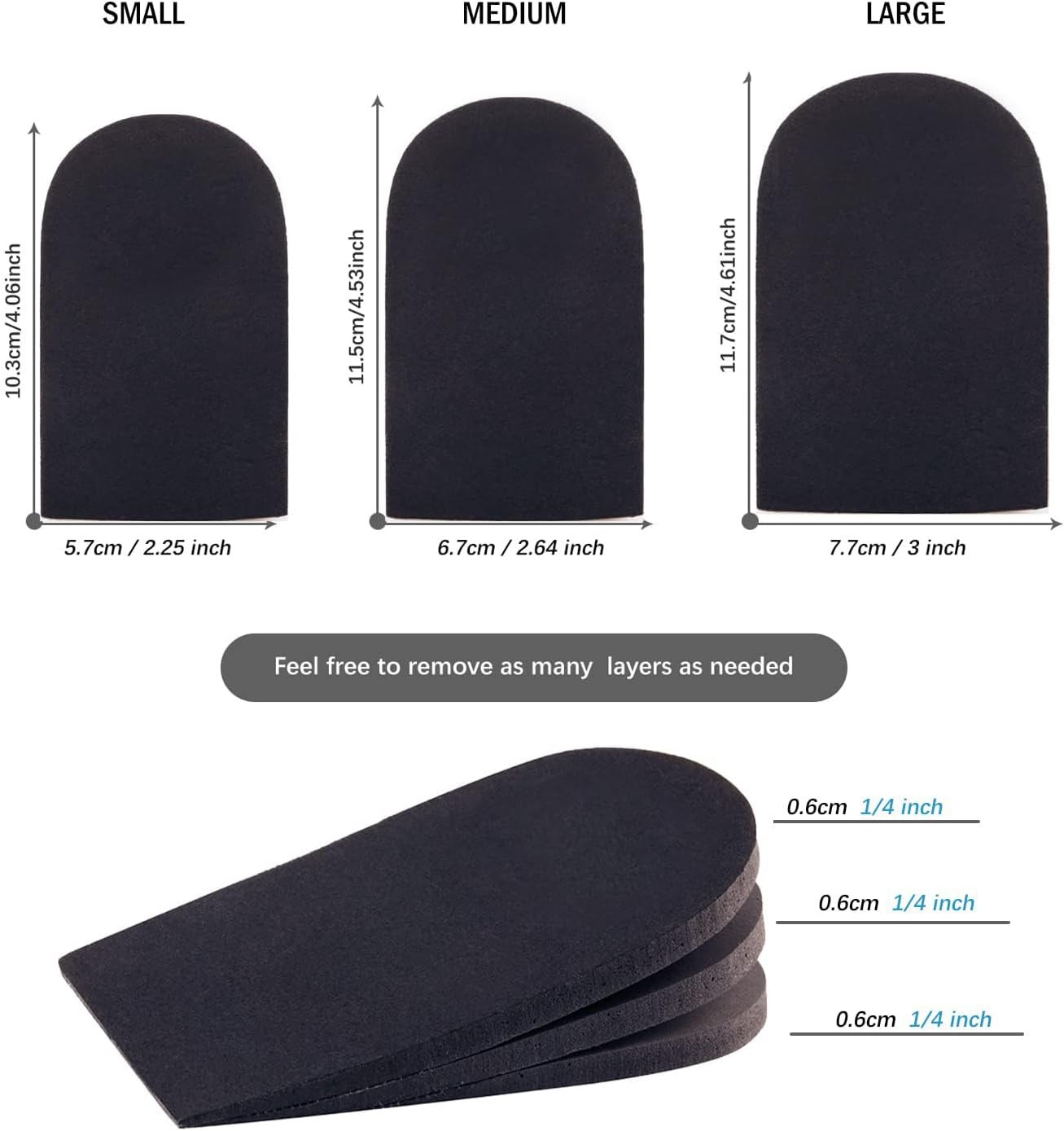 Adjustable Heel Lifts for Shoes, 1/4'' Height Increase Insoles for Achilles Tend