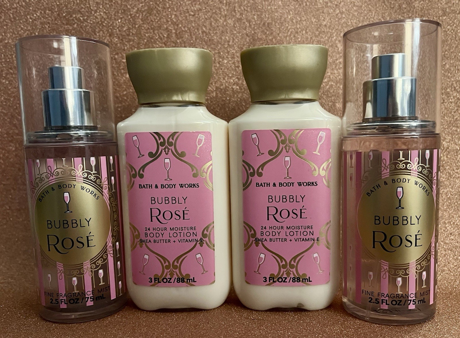 Bath Body Works 4 pc Bubbly Rose Travel Sz Body Lotion Fine Fragrance Mist