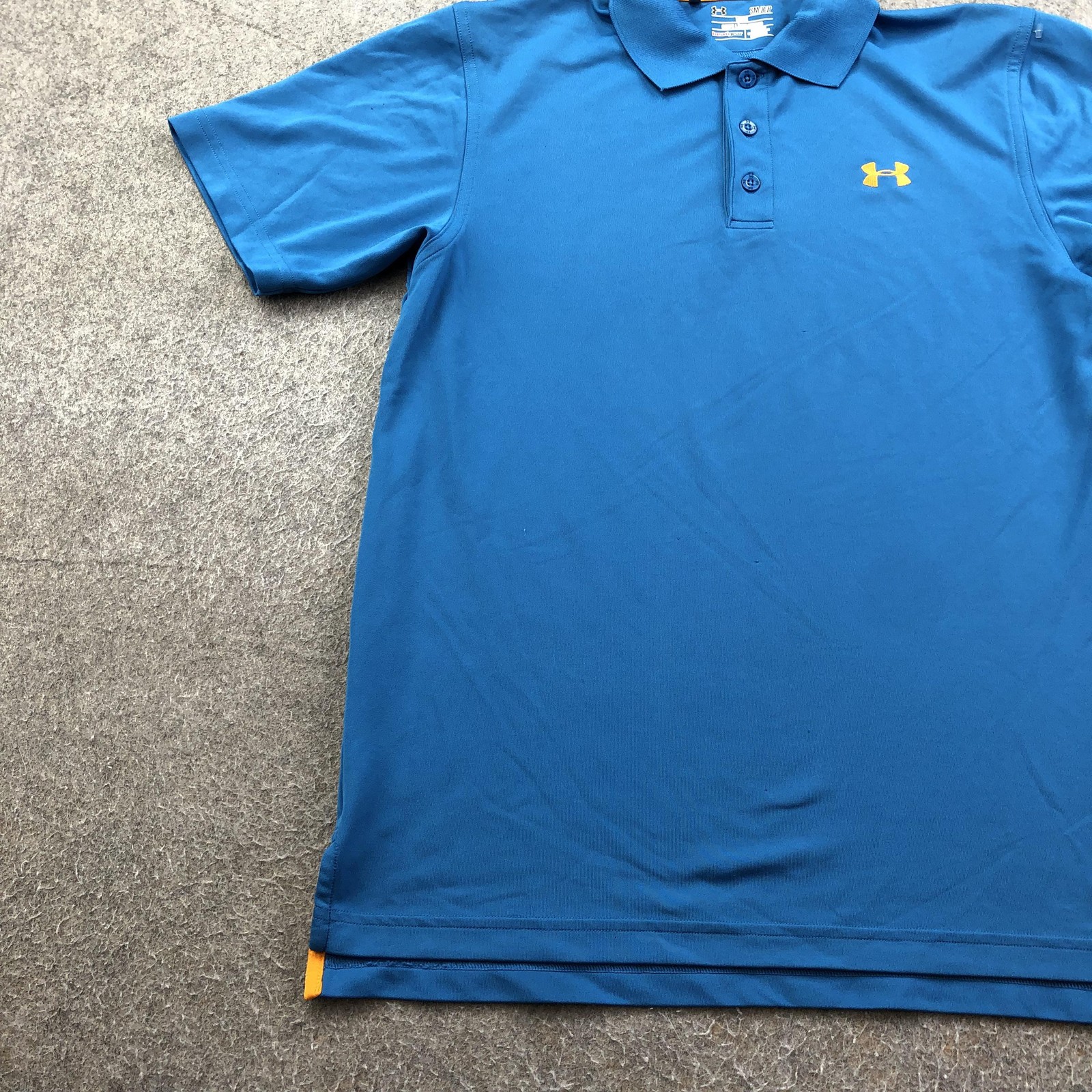 как выглядит Under Armour Polo Shirt Mens Small Blue HeatGear Golf Performance Loose Fit фото