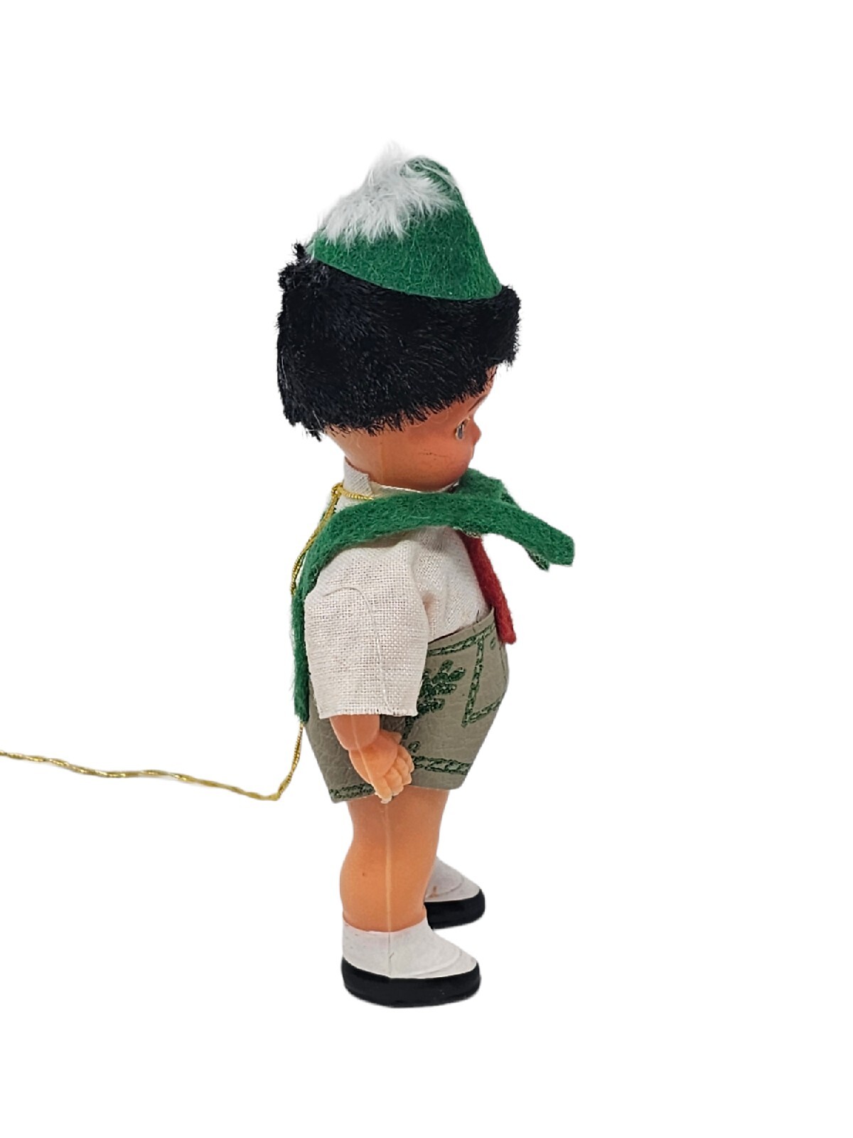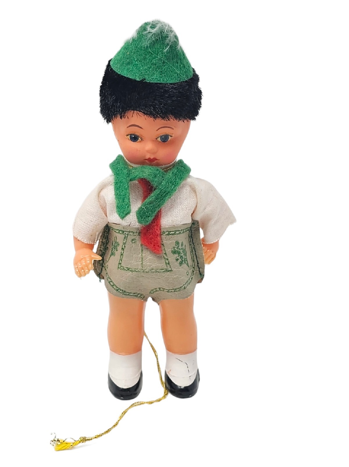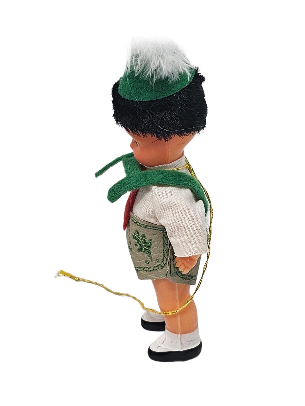 Vintage Kitsch German Bavarian Boy Doll Ornament Lederhosen Feather Hat Folk Art