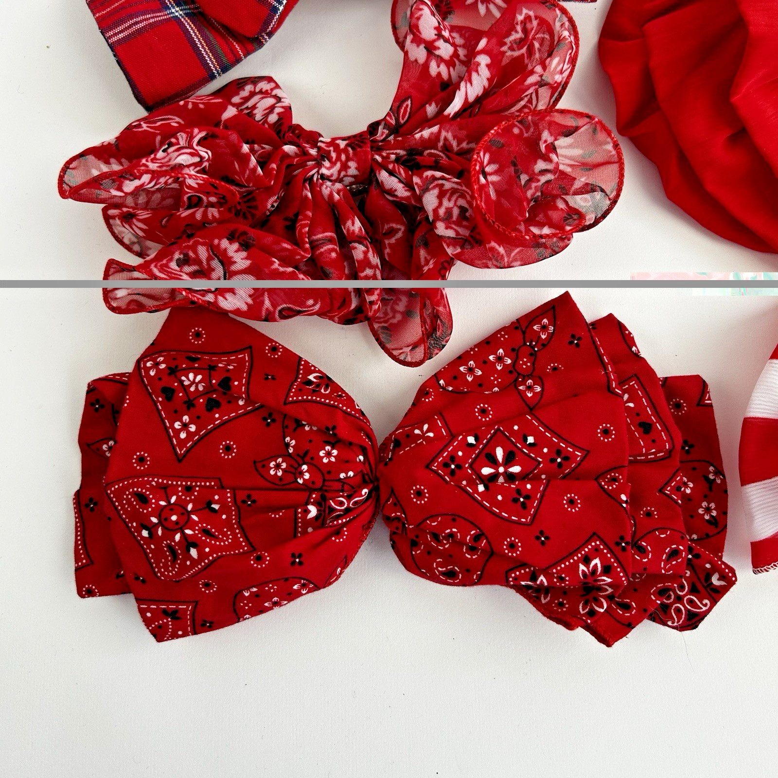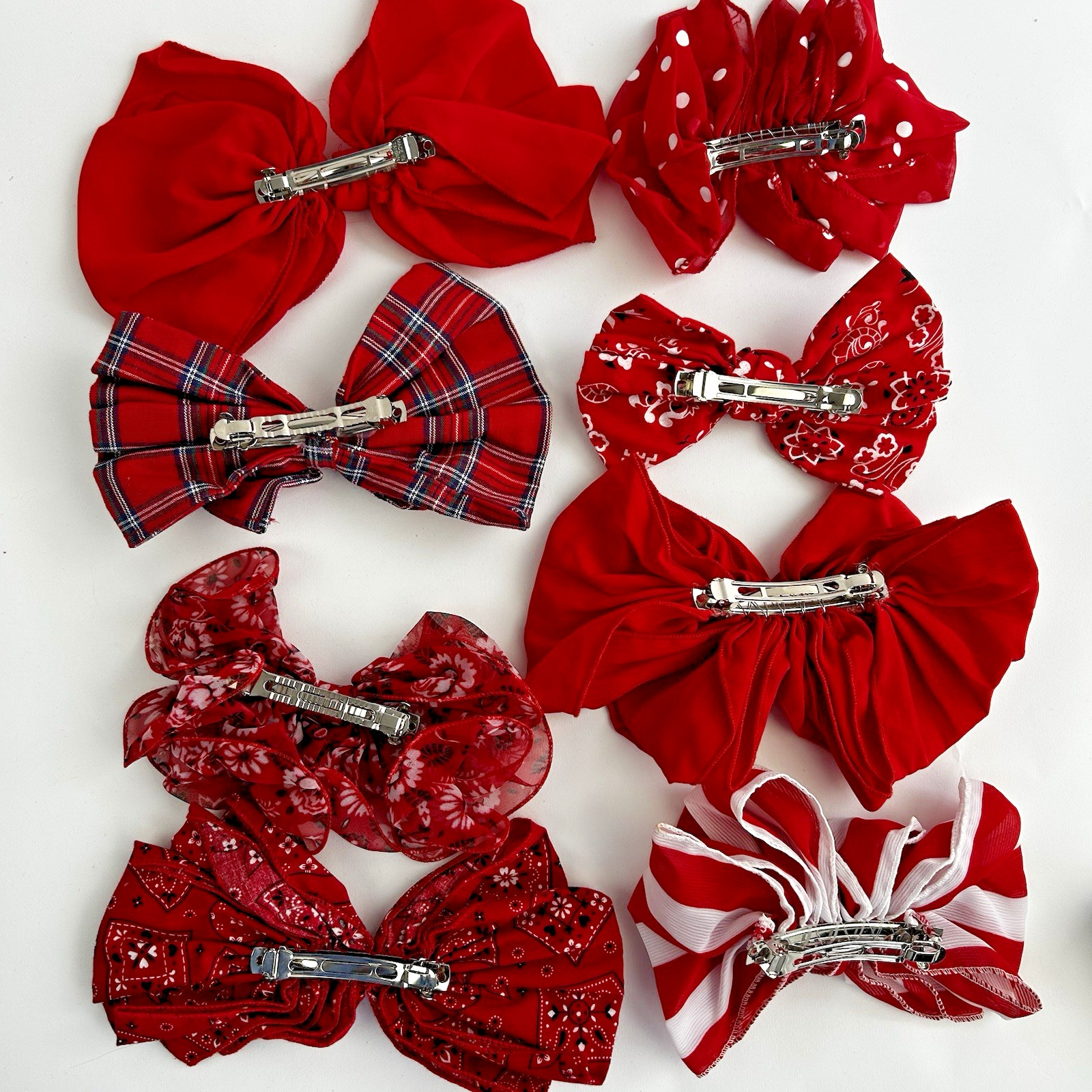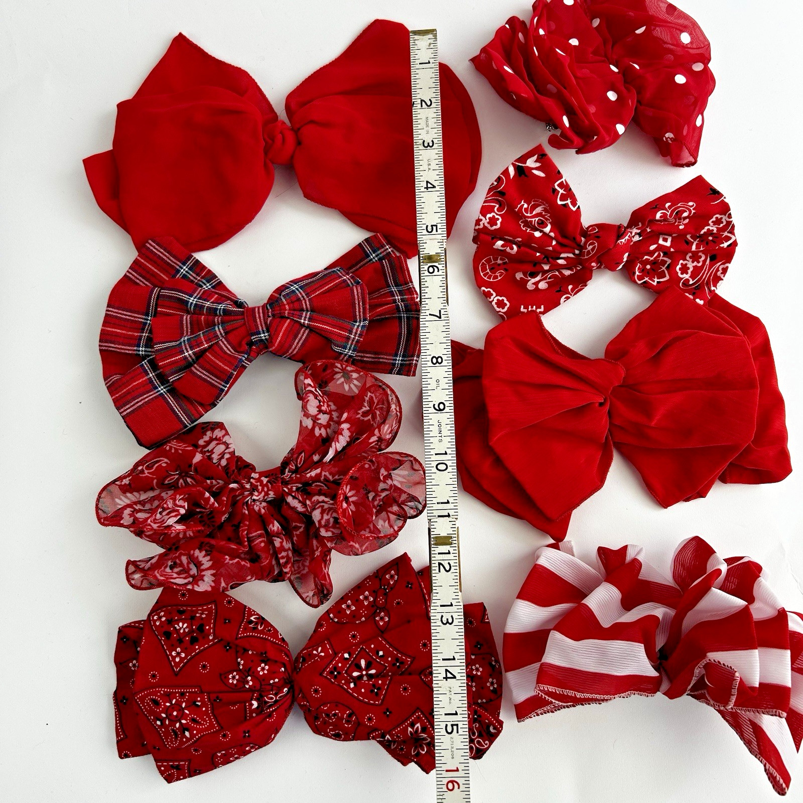 Vintage Lot Of 8 80s 90s Hair Bows Y2K Ruffle Satin Chiffon Barrettes Red White