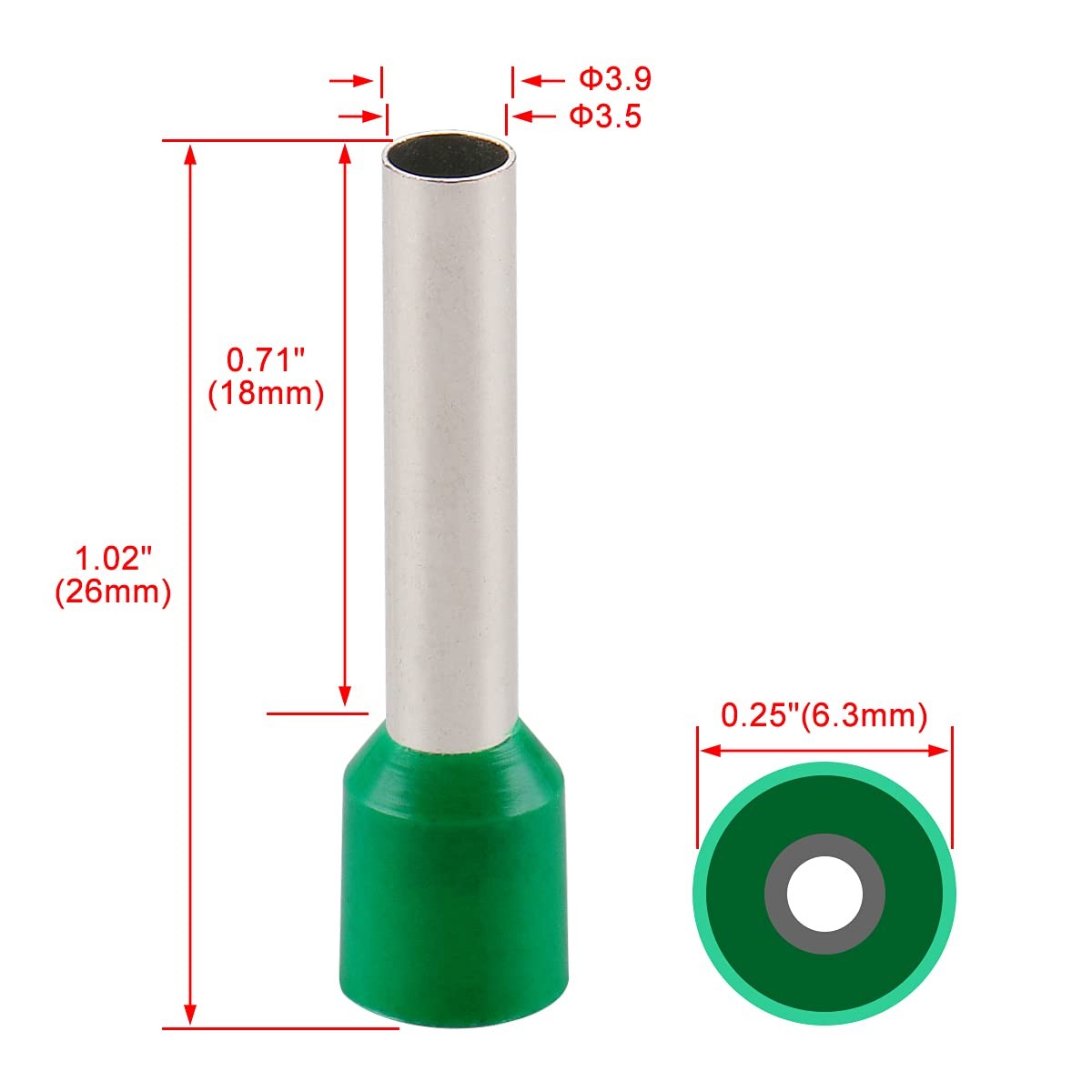 как выглядит AWG 10 6mm Wire Copper Crimp Connector Insulated Ferrule E6018 Green 500 PCS фото