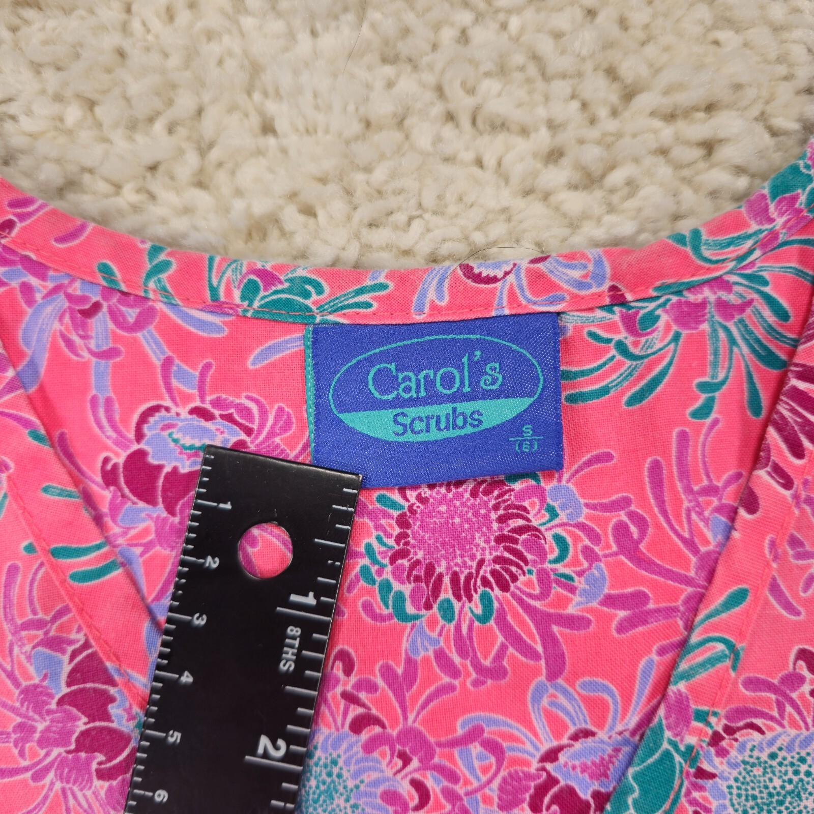 как выглядит Carols Scrubs Womens Shirt Pink Floral Design Scrub Size Small 6 Flowers фото