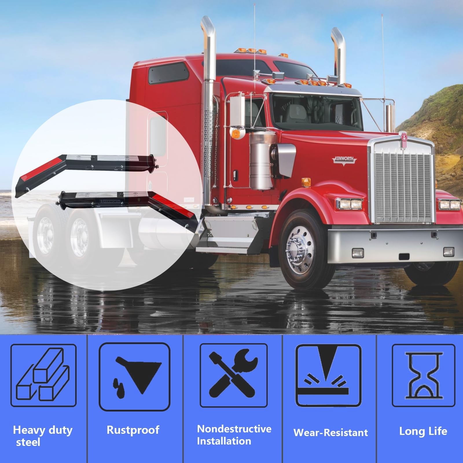 Pair Black Steel Angled Spring Loaded Mud Flap Hanger Set 2.5 Bolt Spacing