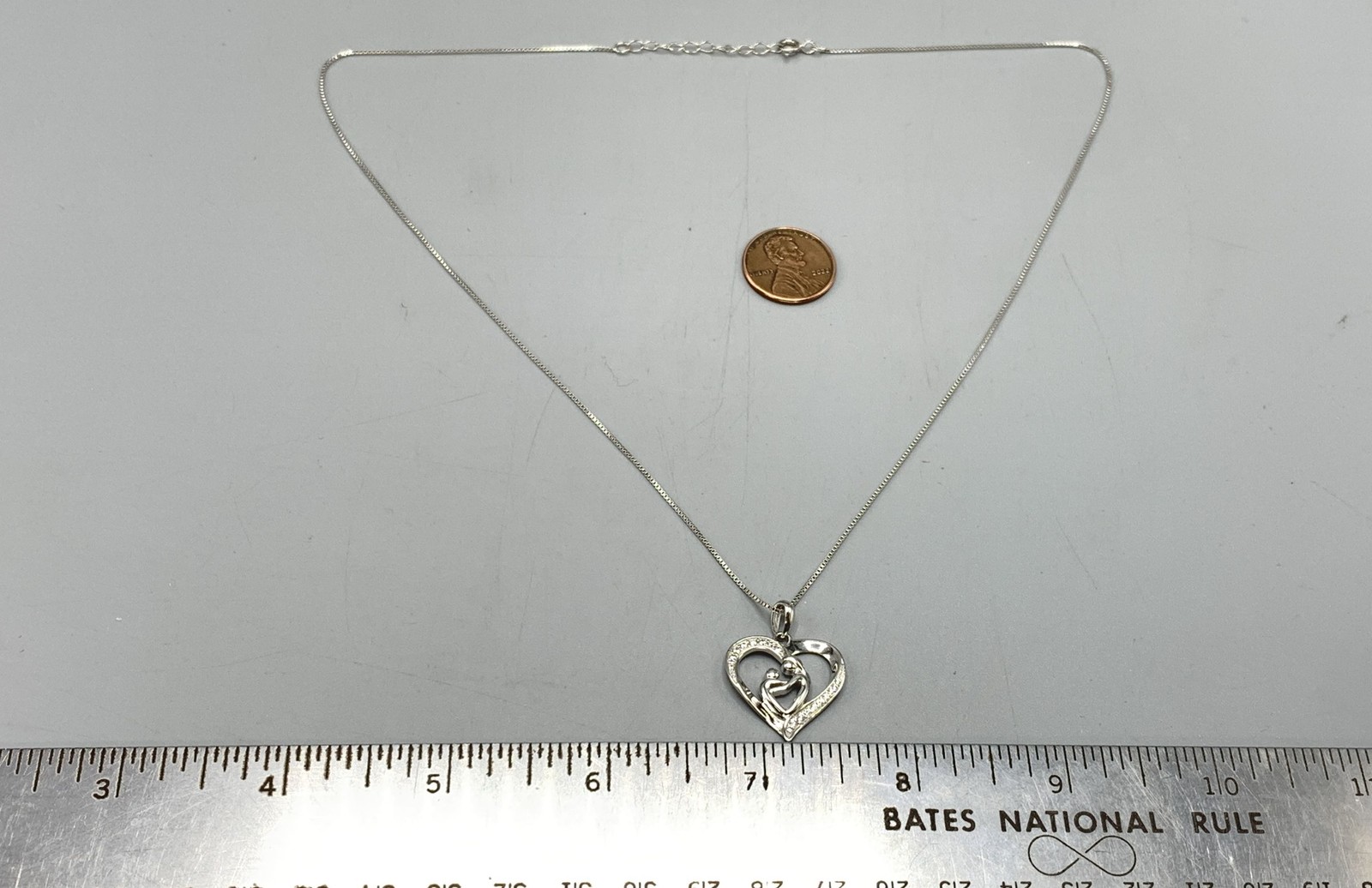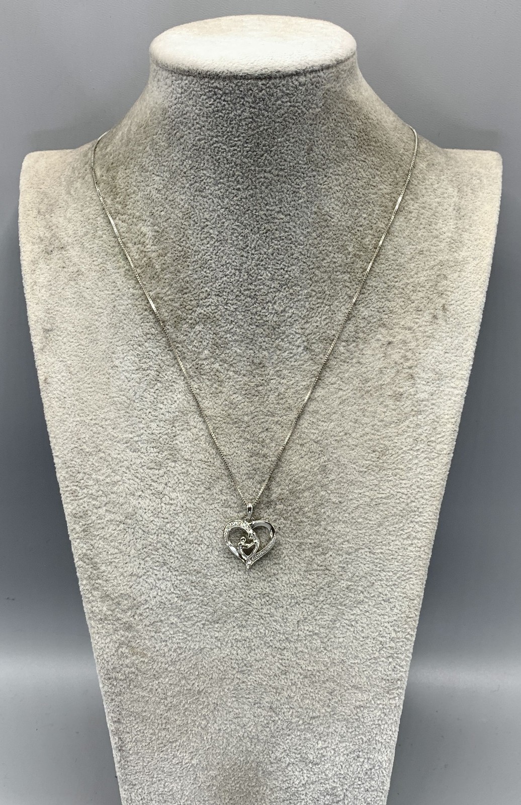 как выглядит Sterling Silver, CZ Mother Child Heart Pendant Necklace фото