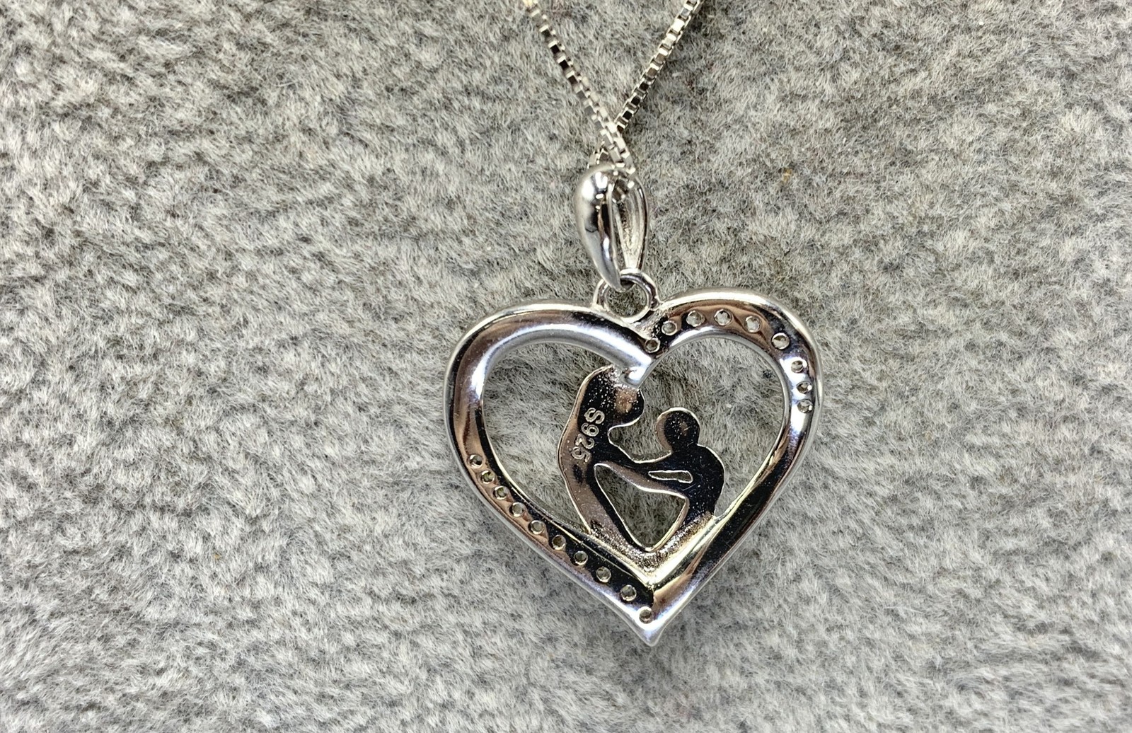 Sterling Silver, CZ Mother Child Heart Pendant Necklace