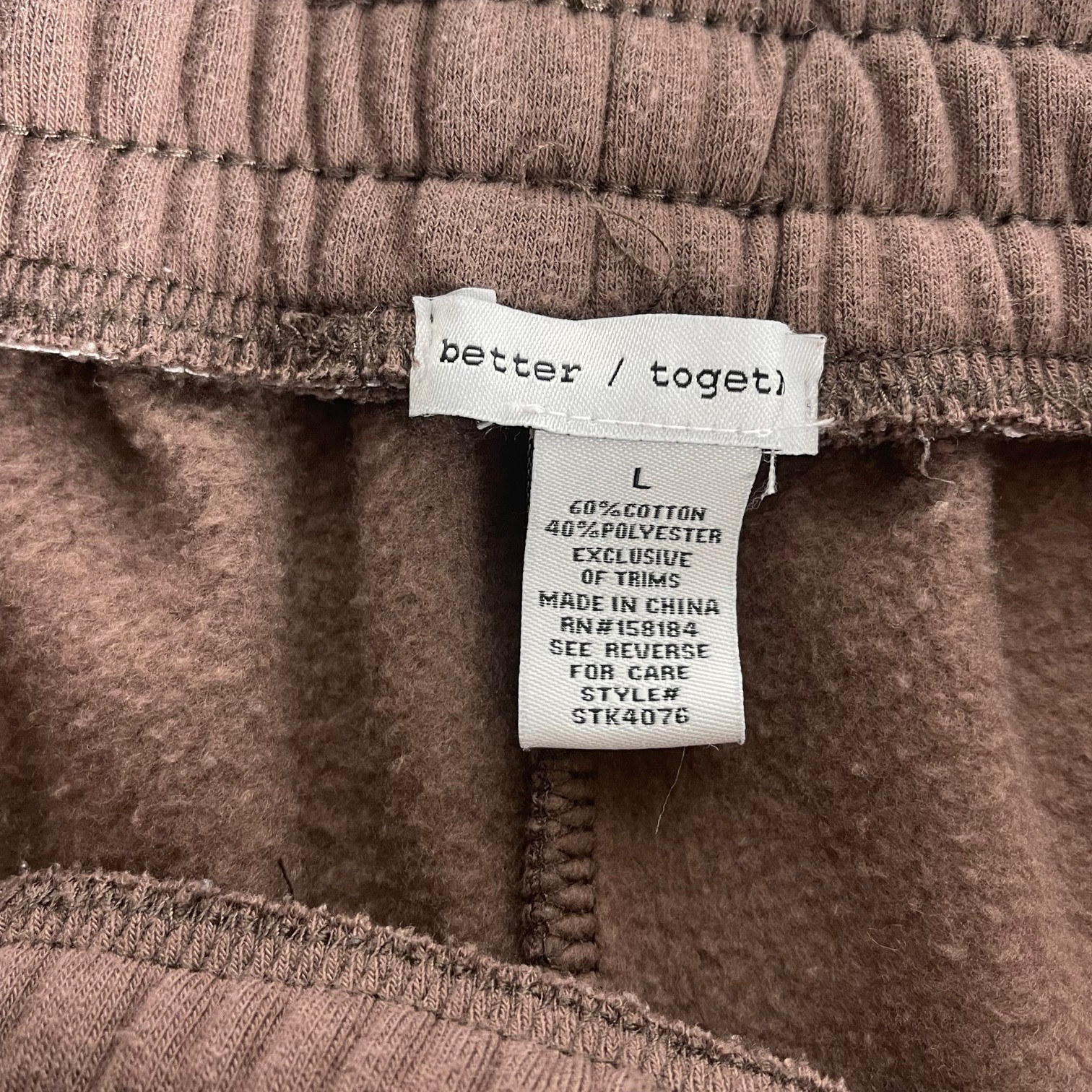Womens Cropped Hoodie Jogger Matching Set Athleisure Comfort Gym Brown Sz Lg