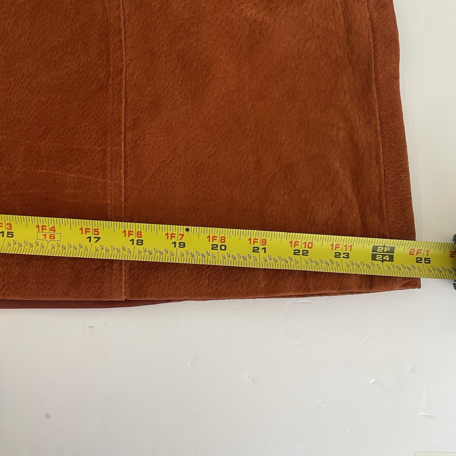 VTG 90s Real Leather Suede Skirt Size 14 Rust Orange Waist 38 Festival Boho Mini